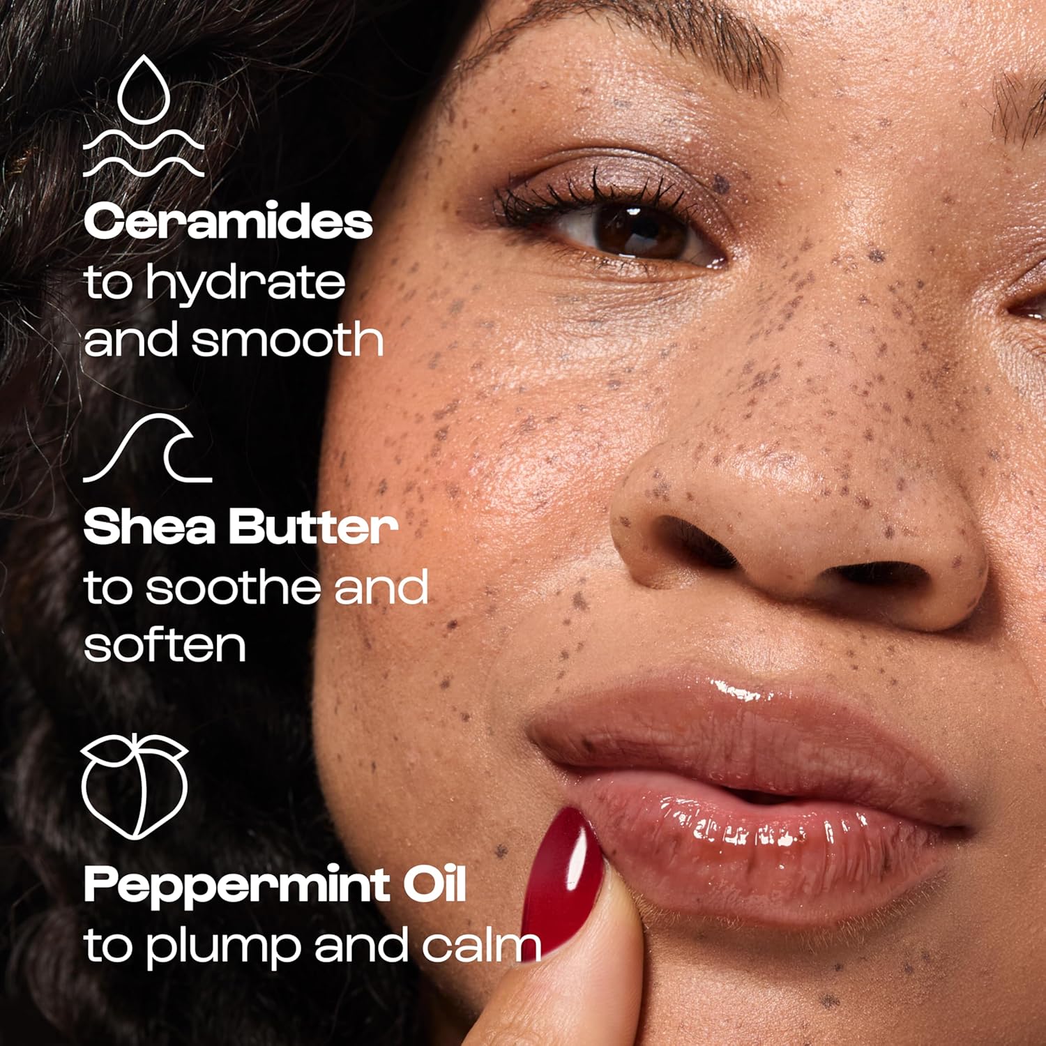 - DEEPLY MOISTURIZING, NOURISHING INGREDIENTS: Infused with Shea Butter, Ceramides, Tripeptide, Castor Oil, and Vitamin E to lock in moisture, soften, repair, and protect for supple, hydrated lips.