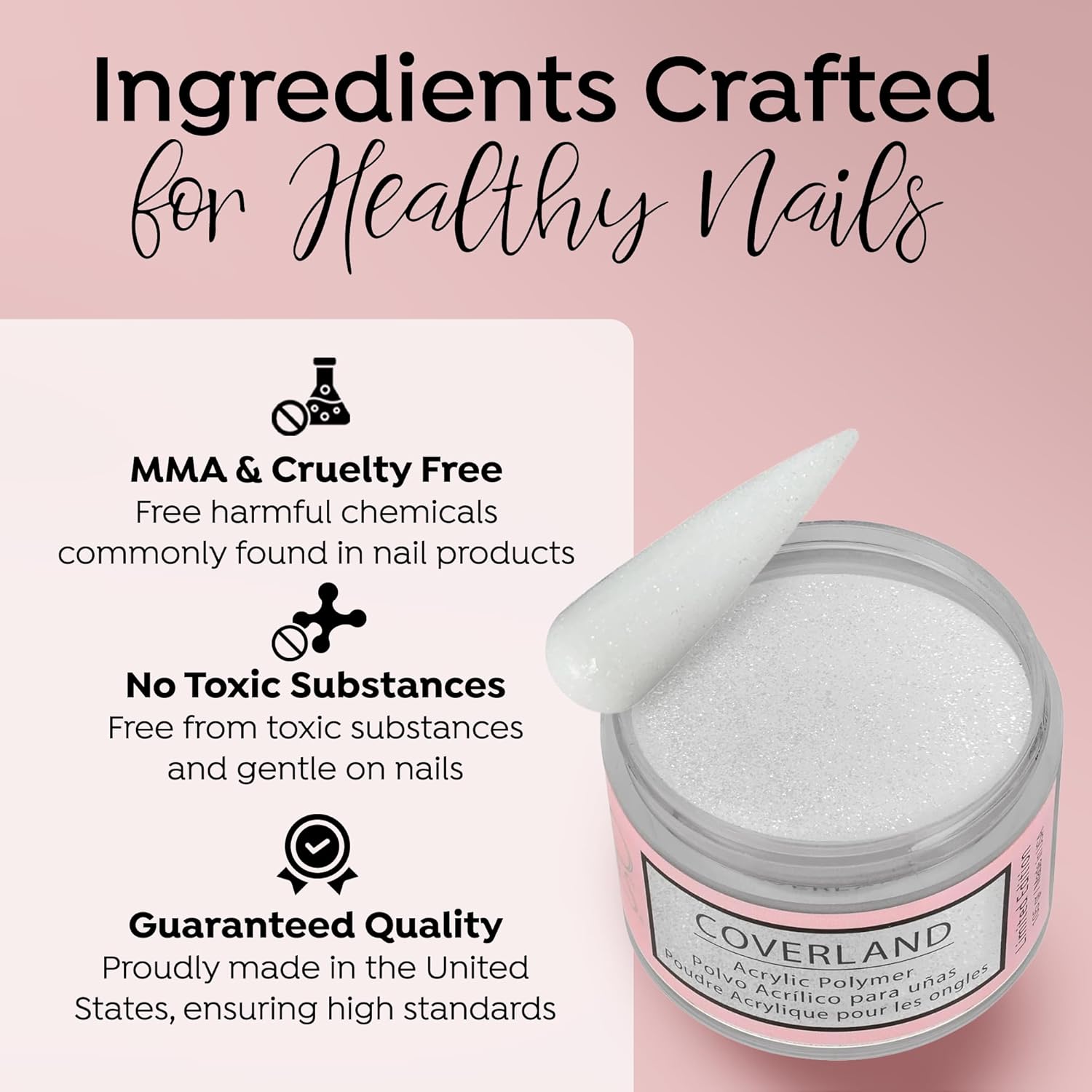 - CAMOUFLAGE IMPERFECTIONS: Coverland Polymers cover the nail bed with highly saturated skin tones and colors, helping to improve aesthetic appearance and hide imperfections. This specially formulated solution ensures a smooth, even application, allowing you to create flawless nail art with ease