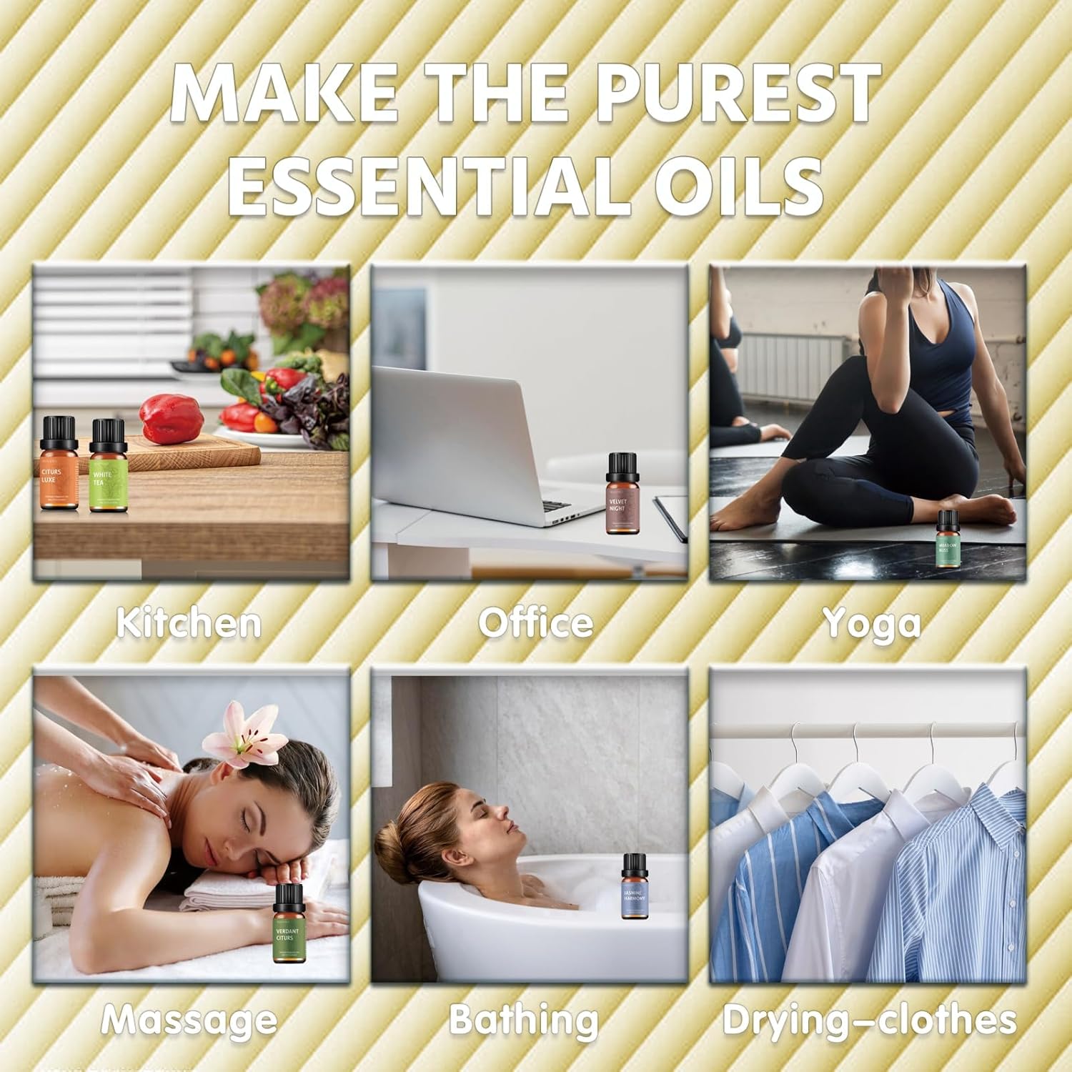 - Perfect for Home and Hotel Diffusers:Designed for versatility, these essential oils for diffusers for home work wonderfully in both hotel diffusers and various DIY projects such as candle making, soap making, or as air fresheners. Elevate your environment with these high-quality fragrance oils