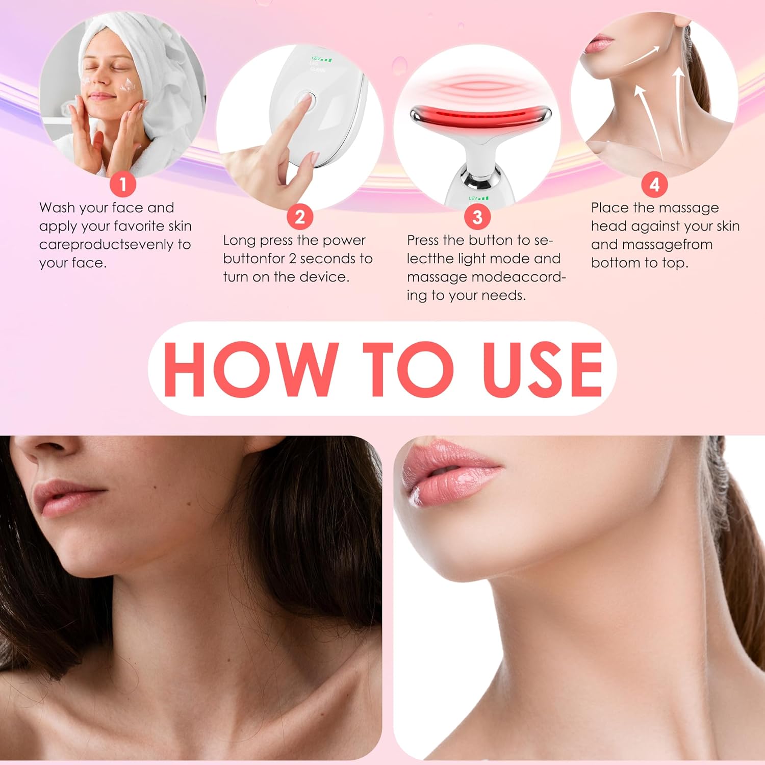 Facial Massager Red-Light-Therapy-for-Face and Neck, Face š² culpting Wand with 7 Color (White)