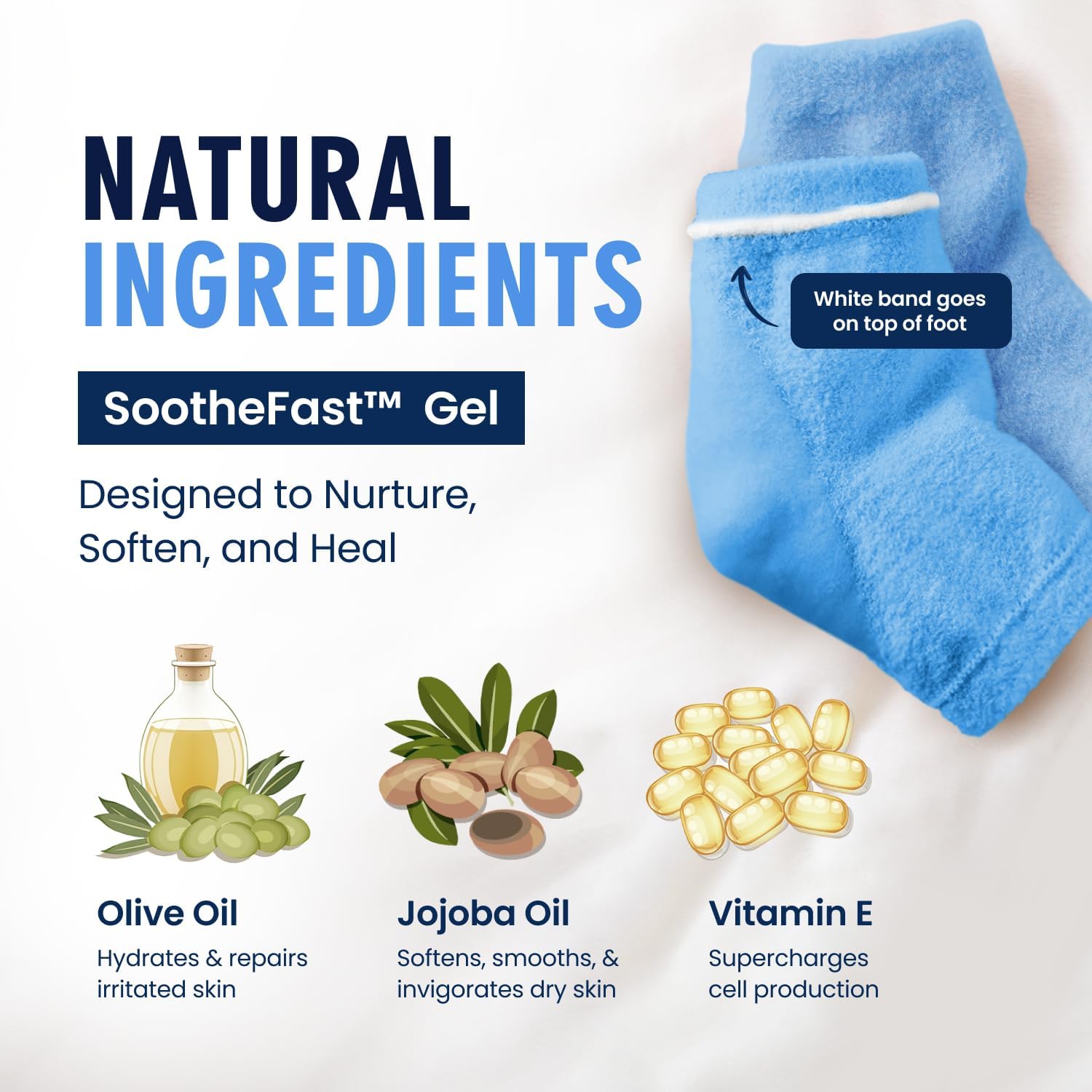 - Advanced SootheFast Gel Lining Technology: Latex-free gel lining locks in healing moisture. Breathable, toeless, moisture-wicking fabric keeps feet cool and dry. Flexible design fits most adult feet, including wide sizes.