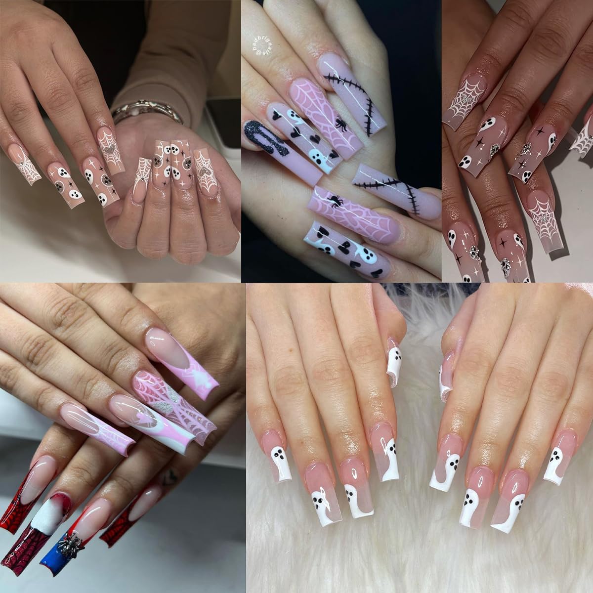 - Easy to Use: 3D self-adhesive Halloween design nail stickers, requires no glue, just remove sticker then stick this 3D nail decals on your nail. Apply top coat gel to seal to make the stickers last longer.