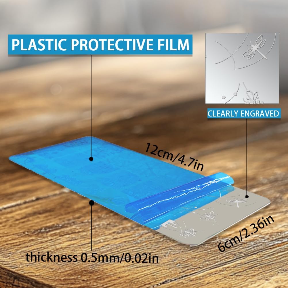 - Metal Material: Made of thick steel plate, not easy to fade, rust, steel plate surface with blue protective film to prevent scratches, clear lines, meticulous workmanship, different base colors present different effects. Size: 4.7×2.36inch