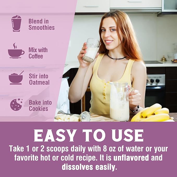 - Unflavored & Quick Dissolve: One scoop with 9g of protein and 18 amino acids for your daily routine. It dissolves quickly in hot or cold liquids without flavor or odor, perfect for coffee, tea, smoothies, or your favorite recipes. Contains zero sugar, artificial colors, flavors or sweeteners; gluten, dairy & soy free; Non-GMO, keto & paleo friendly