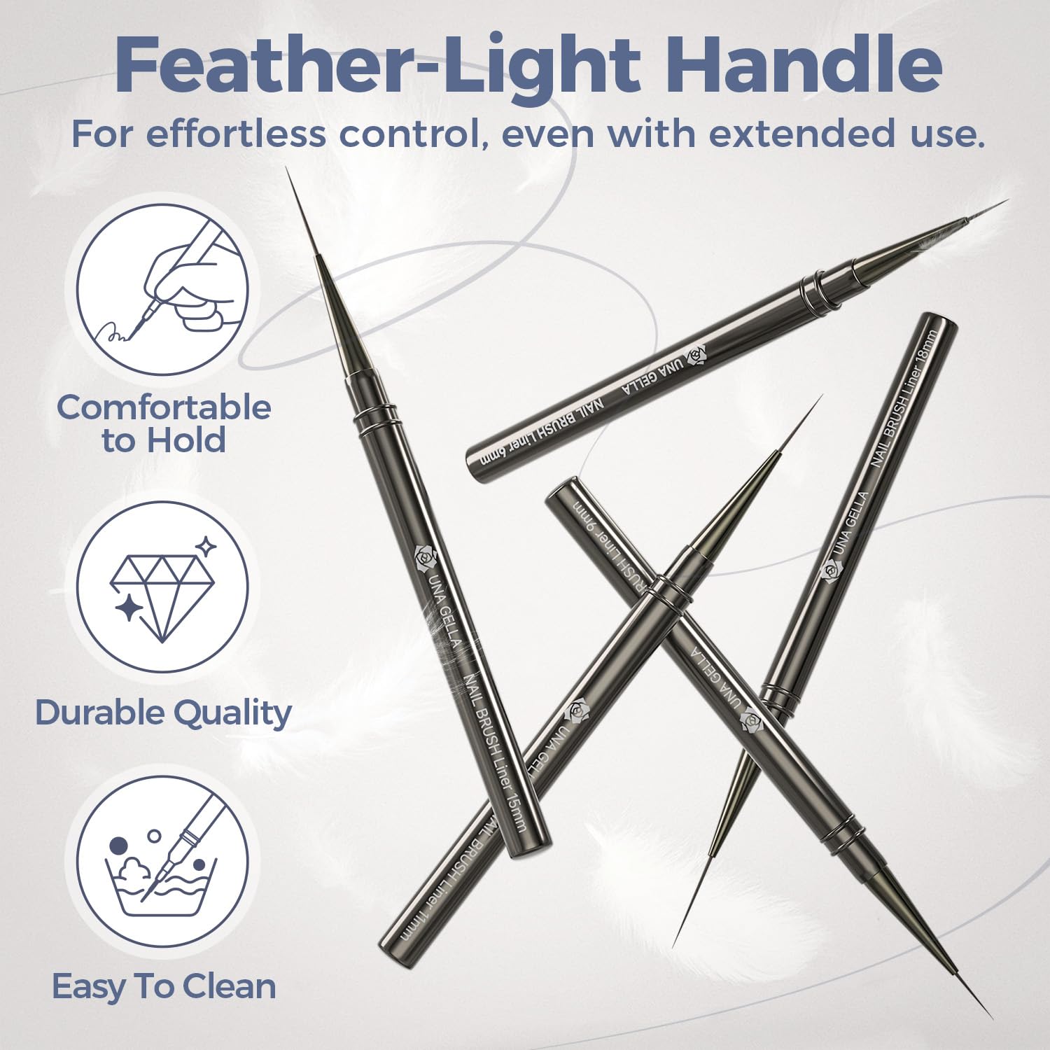 UNA GELLA Nail Art Brushes Metallic, Liner Pens 5Pcs Set For Nail Art Gel Polish, Gray Color, Detail Nail Art Design Painting Brush Set For Nails Gel Fine Drawing Nail Tools, 6/9/11/15/18mm Sizes