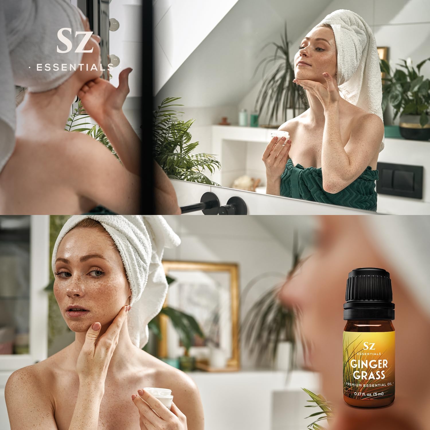 – Ginger Grass Essential Oil – 100% Pure & Undiluted (Cymbopogon martinii VAR. Sofia)– Fresh Citrusy Earthy Aroma – Aromatherapy, Perfumery, Skin Care – Therapeutic Grade - 1/6 oz. 5 mL