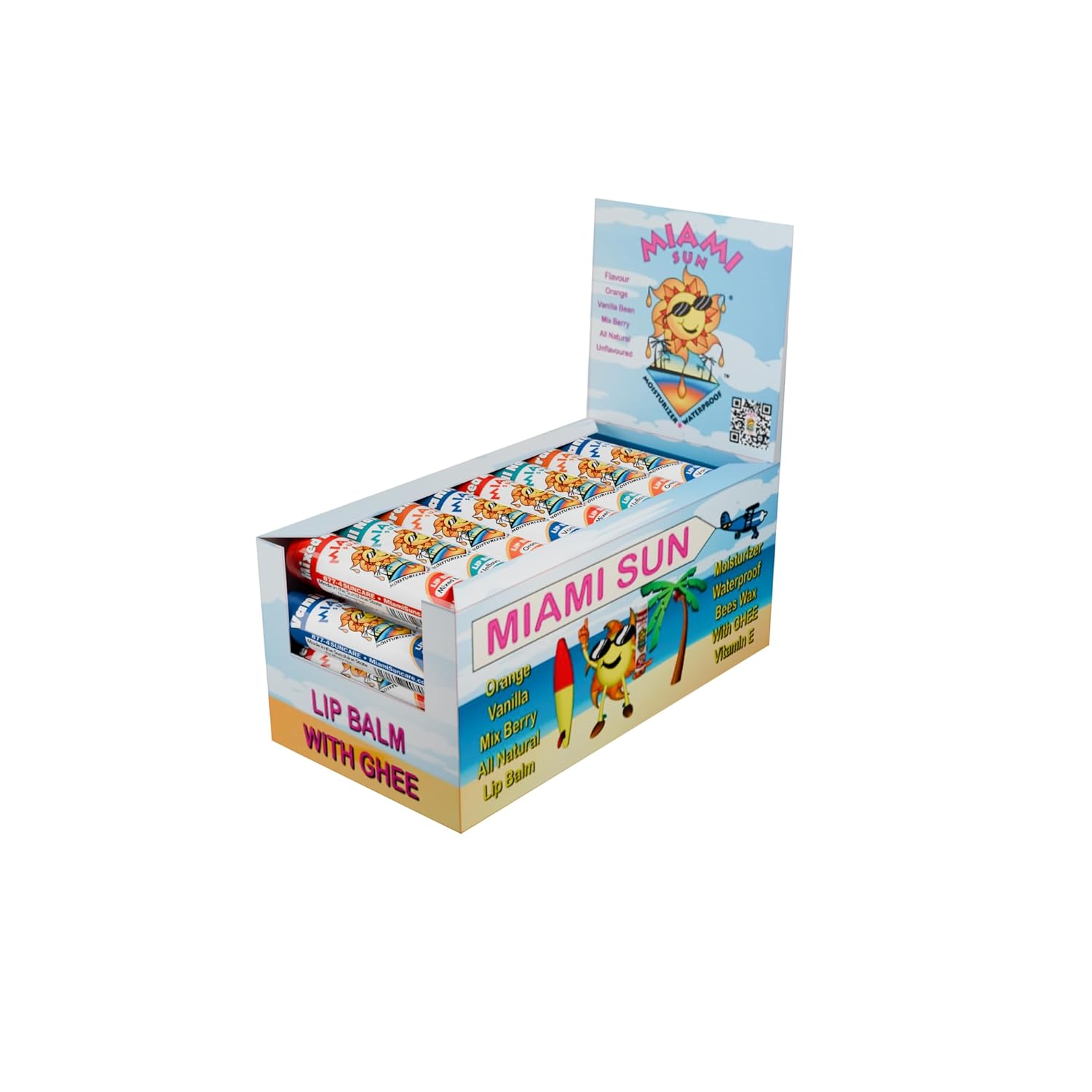 Miami Sun Natural Ghee Lip Balm, Hydrating Lip Treatment with Shea Butter & Beeswax, Organic & Non-Toxic, Best for Dry, Chapped Lips - Moisturizing, Healing, Chemical-Free Care (Gift of 40, Variety)