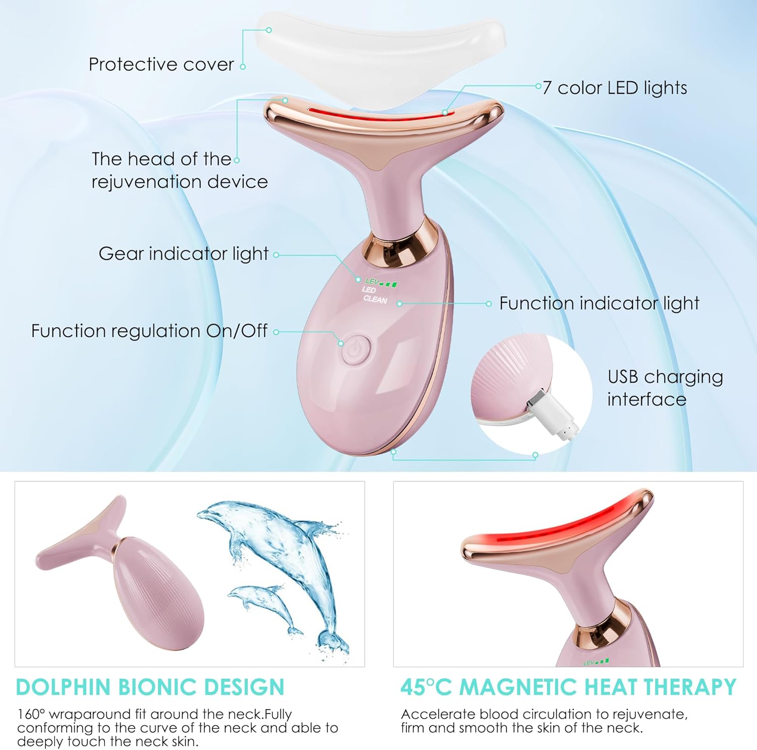 Facial Massager Red-Light-Therapy-for-Face and Neck, Face š² culpting Wand with 7 Color - Birthday, Christmas, Mothers Day, Valentines Day Gifts for Her Women Mom Best Friend Wife Teacher (Rose Gold)