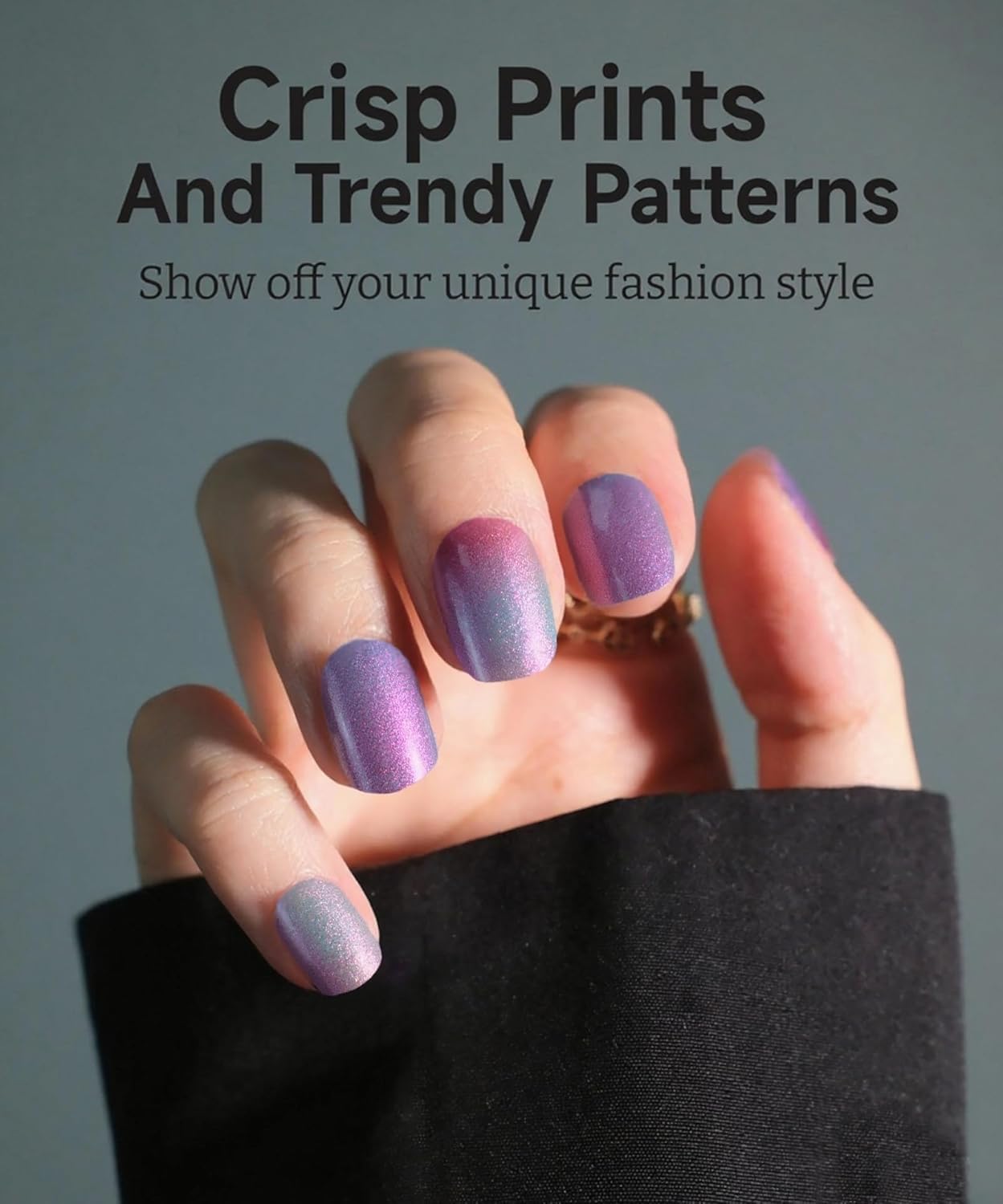 - [TIME & COST-SAVING]: Get Salon-Quality Nails In Minutes,our nail polish strips do not require UV light and dry time, easy to apply and remove for all beginners. Help you get rid of long-time manicures and expensive nail salons.