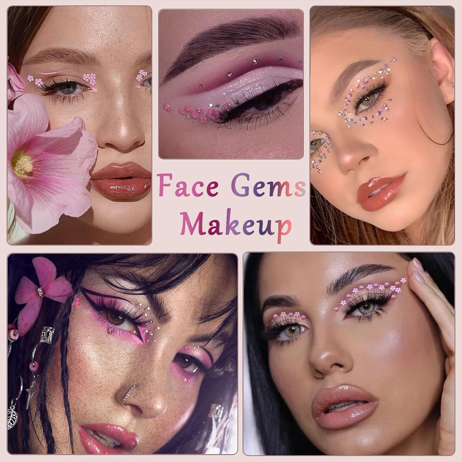 Flatback Nail Art Rhinestones Flower Nail Charms with AB Rhinestones Glue Gel Pink Nail Supplies Accessories Gems Resin Rhinestones for Bedazzling Crafting & Women Nails Design Decor