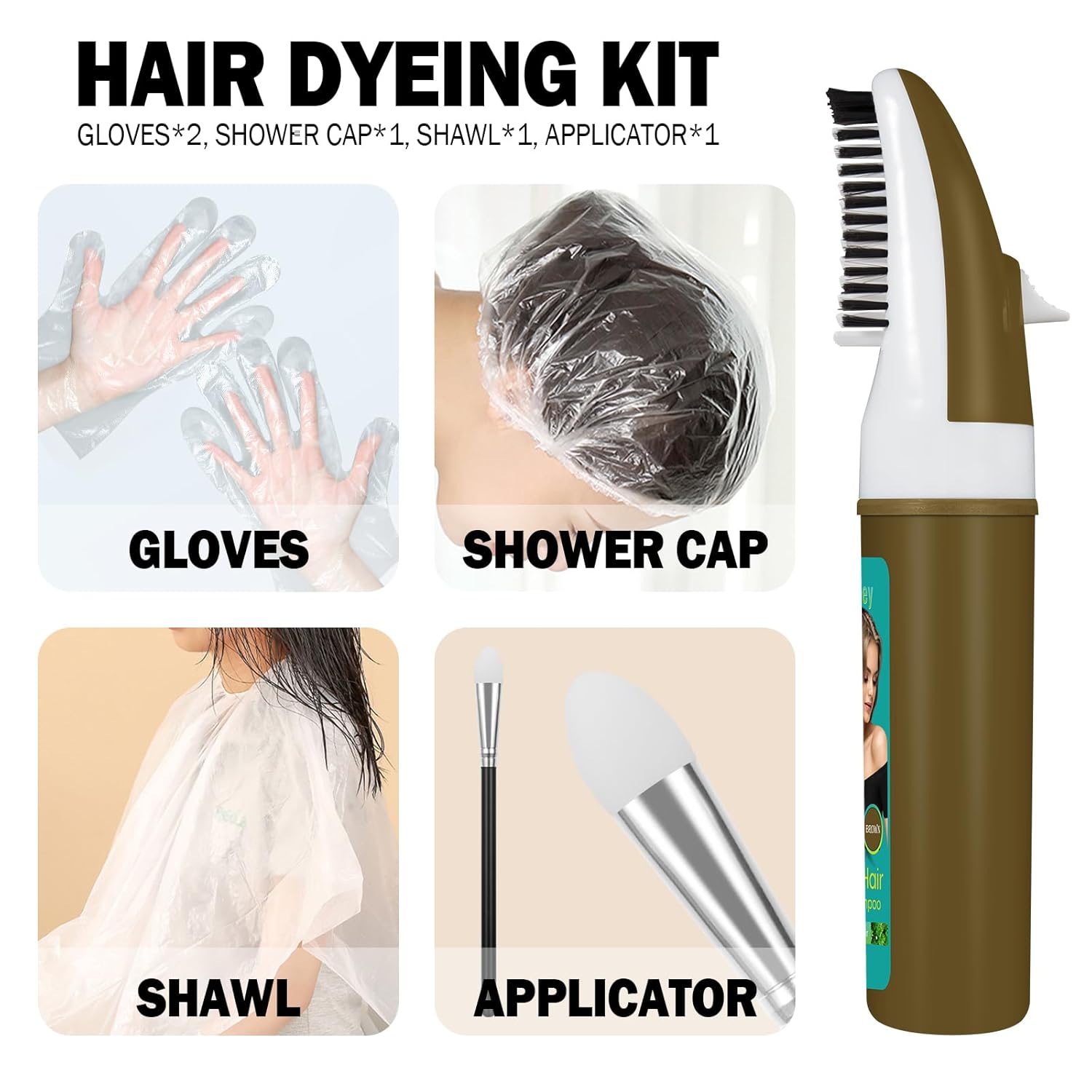 Brown Hair Dye,Hair Dye Shampoo for Women,Hair Color for Gray Hair Coverage Permanent,Comb Dyeing Champu Para CanasHair Dye 4 in 1 With Comb Herbal Natural Plant Hair Color Shampoo(Brown)