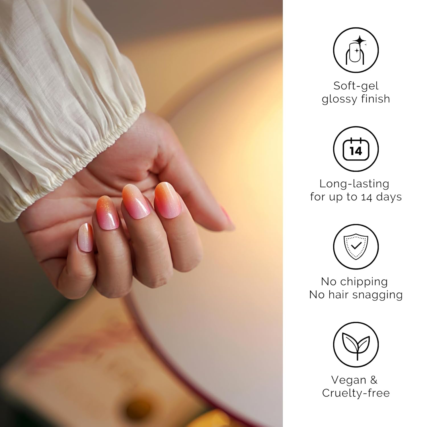 - ❤SALON QULITY: Made of real nail polish 60% precured, soft to fit all nail shapes - Nailog semi cured gel nail strips with waterproof top gel last up to 2 weeks once cured with a UV lamp. Our gel nails are also extremely lightweight so they do feel like your own nails!