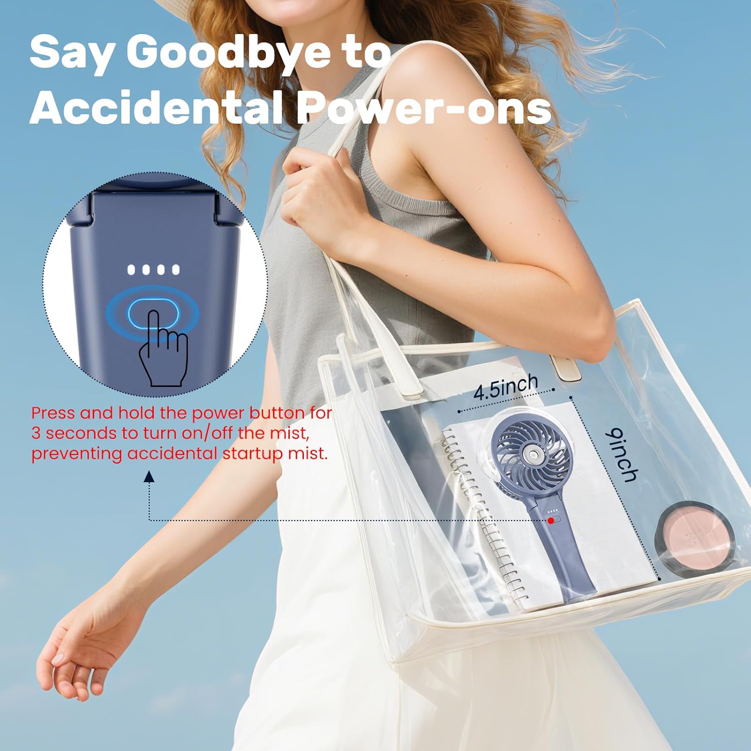 HandFan 4000mAh Upgraded Handheld Misting Fan, 50ml Water Tank, Rechargeable Personal Mister Fan Portable AC, Spray Water Mist Fans, Foldable Cooling Ice Fans for Beach Travel Disney(Royal Blue)