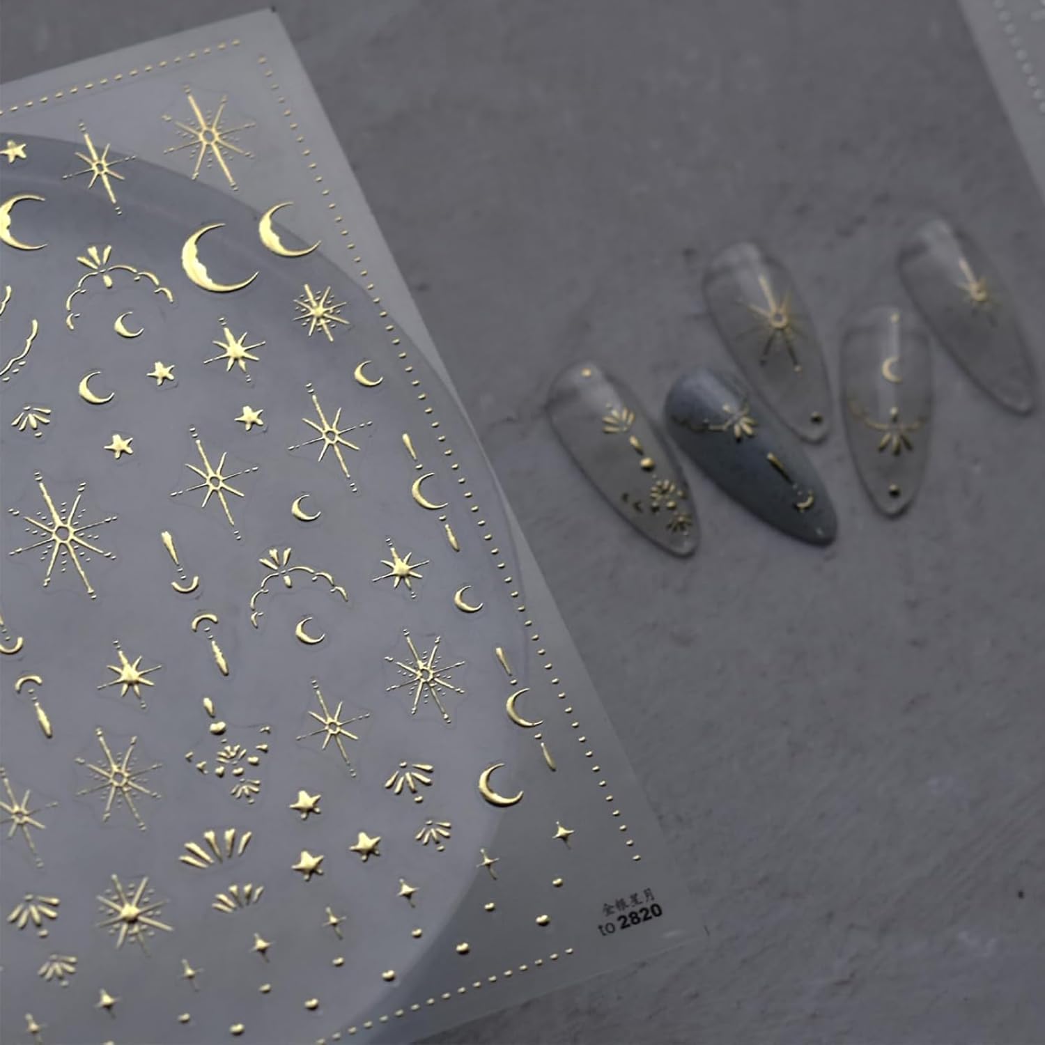 Luxury Moon Star Nail Stickers - 3D Gold Nail Art Stickers Decals for Women & Girls DIY Manicure