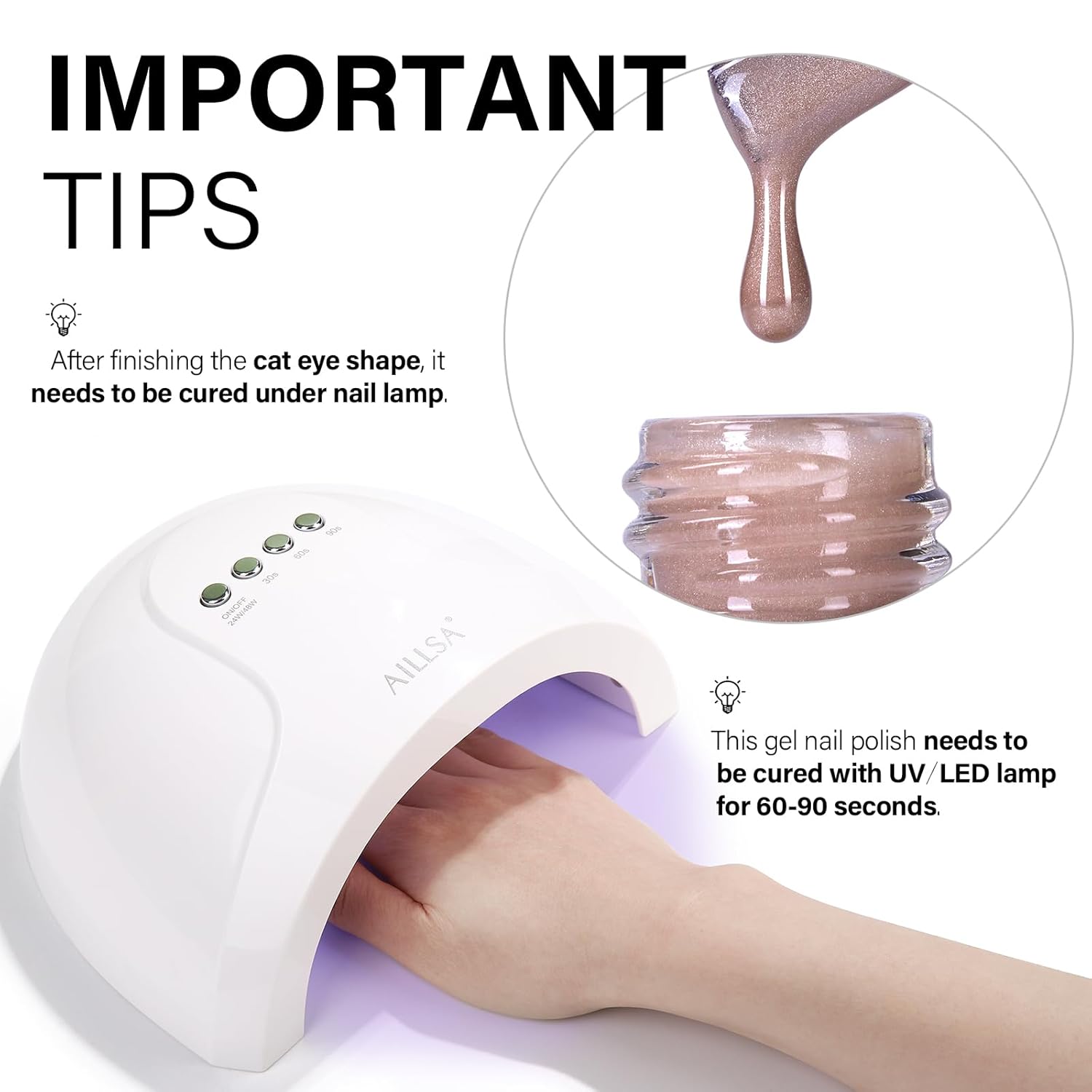 - Crystal Sparkle Effect: AILLSA cat eye gel polish creates mirror-like sparkle, crystal-clear nails, or vibrant cat-eye effects. Use it alone or pair it with any base color for stunning crystal glass nail designs featuring translucent tones and a dazzling finish.