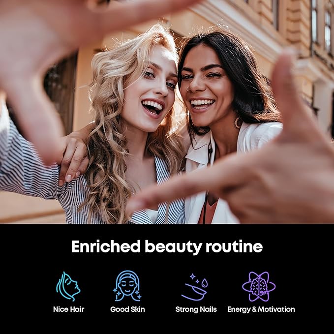 - Glowing Skin with Hair Skin Nails Vitamins - Enhance your skin’s natural radiance with Wellmatics hair skin nails vitamins for women and men. Formulated with a blend of Biotin for hair growth, Collagen, Vitamin B6, and Niacinamide, these gummies support healthy skin and contribute to a smooth, glowing complexion. The addition of Vitamin D and Folate further supports skin health. Incorporate these hair skin and nails gummies into your daily routine for overall beauty support.