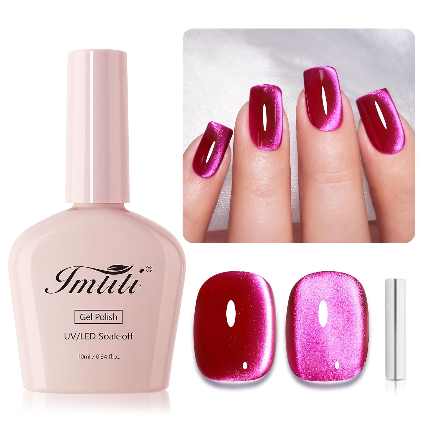 Imtiti Hot Pink Cat Eye Gel Nail Polish, Moonlight Rose Pink Holographic Cat Eyes Glitter Magnetic UV Soak Off Gel Polish with Magnetic Stick 1Pcs (0.34 Fl Oz-945)