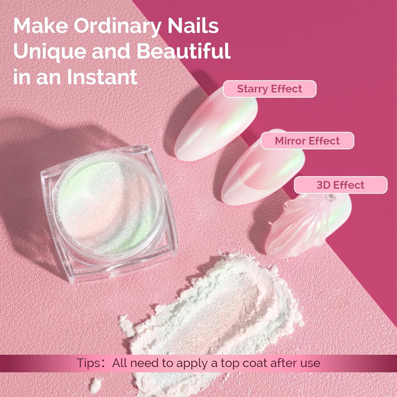MelodySusie Chrome Nail Powder for Gel Nails, Aurora Fine Glitter Powder Mirror Effect Pigment Pearlescent Mermaid Pigment Pearl Glitter for Home DIY Salon Use