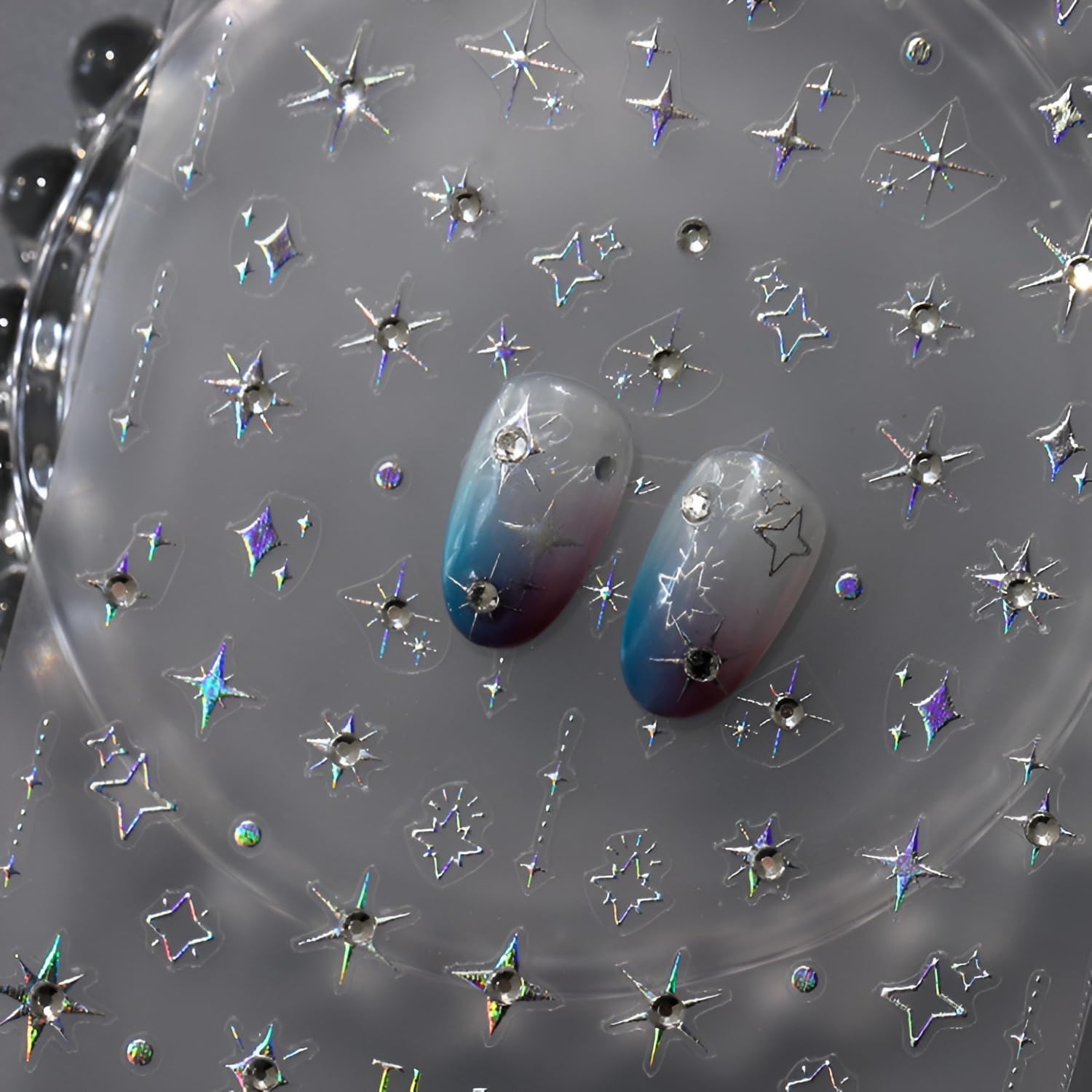 - Easy to Use:5D self adhesive star nail design, it is very easy to apply.Just choose a suitable pattern and apply it on the nails in the correct position, you can use a layer of nail polish to fix for long-term lasting