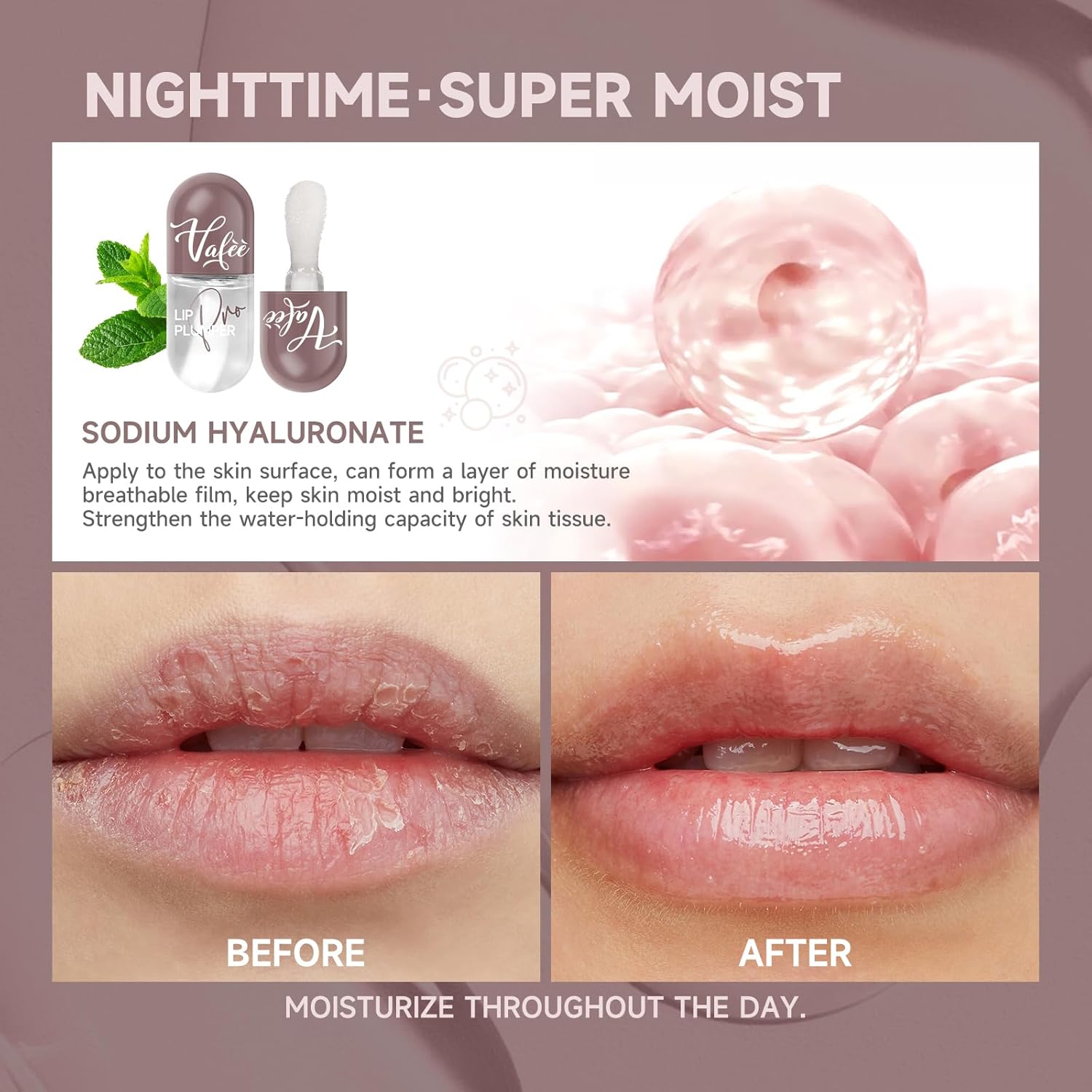 - Natural Lip Plumping, Needle-Free: Vafee Lip Plumper offers a natural method to achieve fuller lips without the need for injections. Through the nourishment of natural ingredients, you can avoid the risks and discomfort of injections and achieve plumper lips.