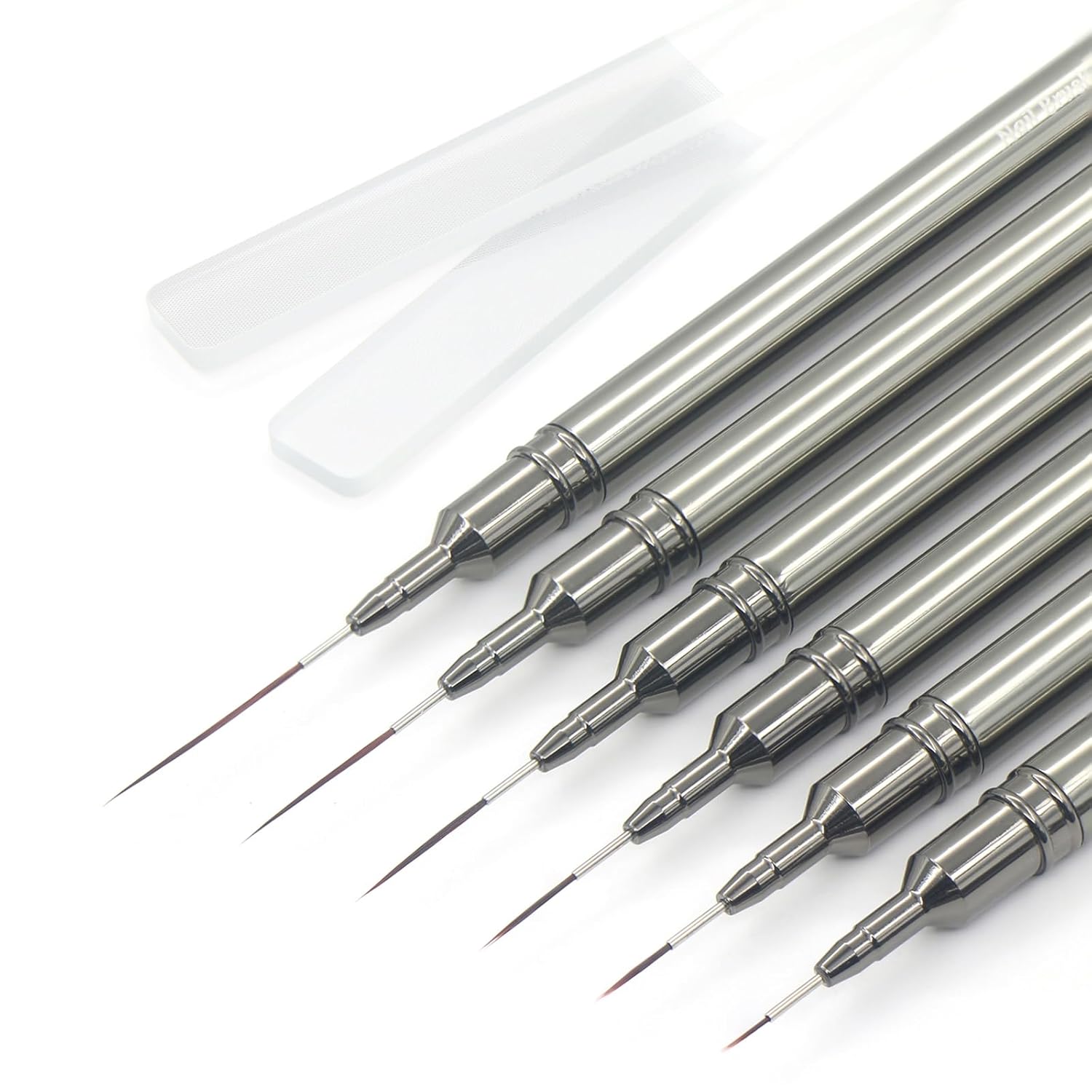 MYR 6Pcs Nail Art Liner Brushes and 2Pcs Nano Nail Files, Metal Nail Art Brushes, Nail Art Pens, Nail Art Tools, suitable for Long Lines, Thin Details, Fine Drawing Sizes 6/9/12/15/18/25mm