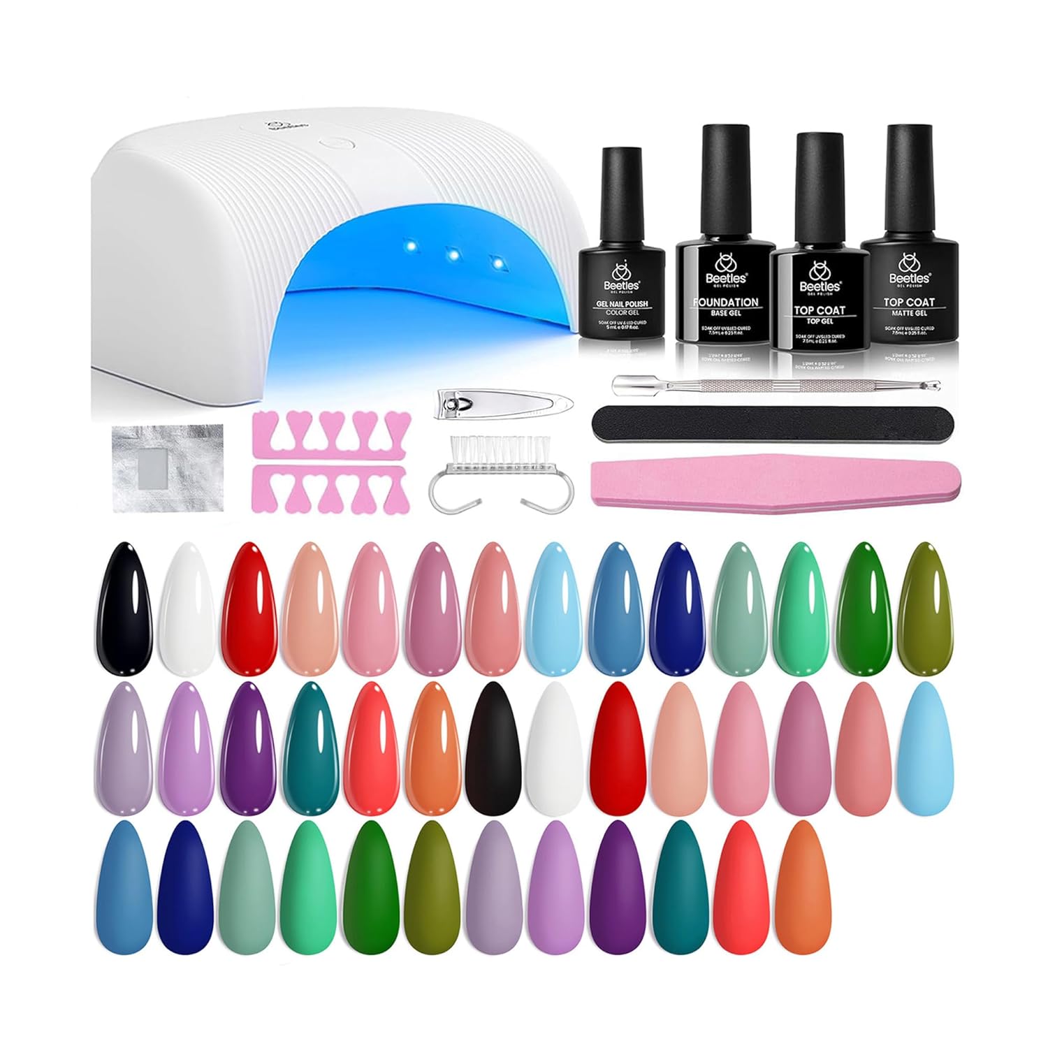 Beetles Gel Nail Polish Kit with U V Light - 31 Pcs Gel Polish Kits 20 Colors with Base and Glossy Top Coat Soak Off DIY Salon Beginner-friendly Manicure Nails Stuff Gifts for Women Teens Girls