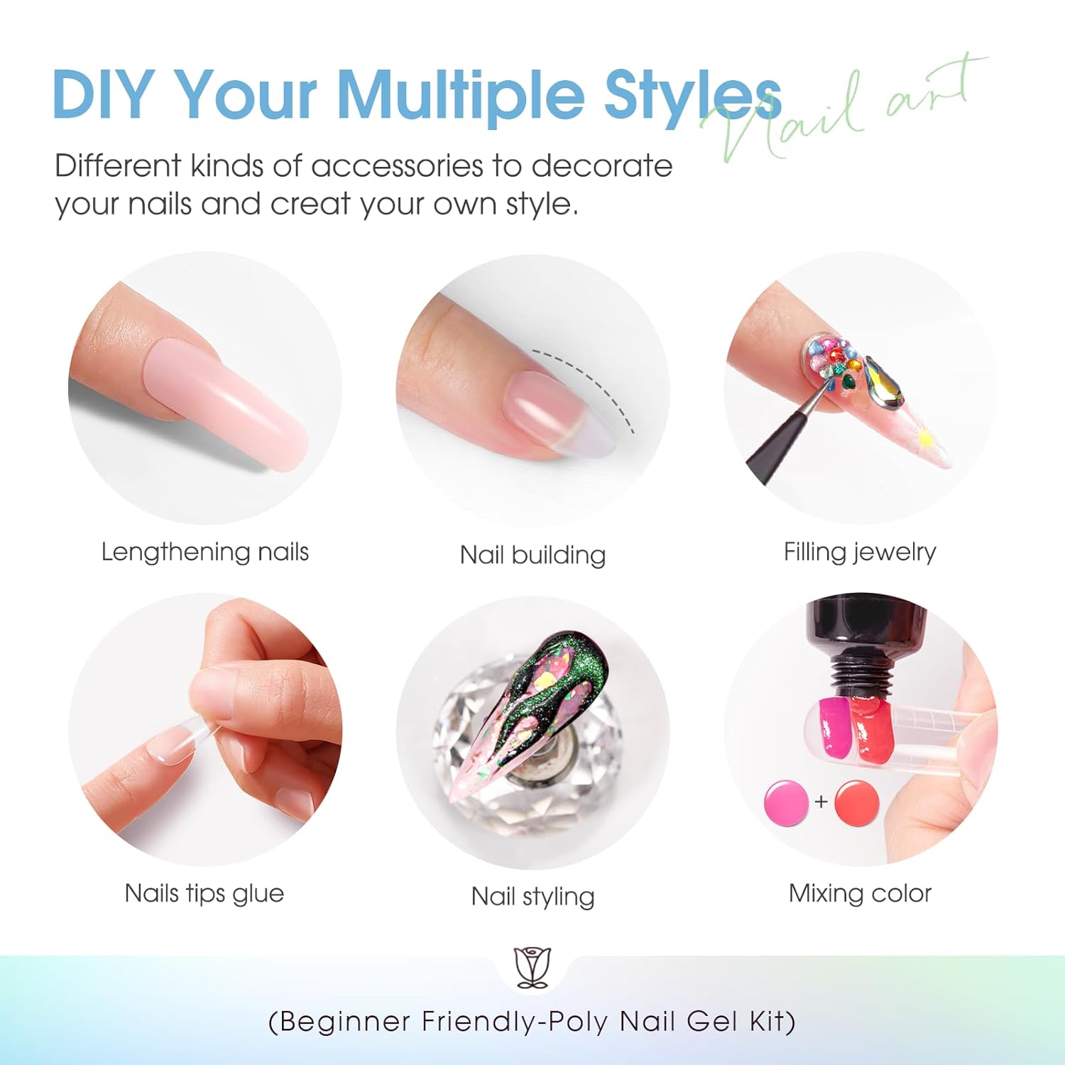 - Customer Service: Our Poly Nail Gel starter kit are brand new and built to last. If you receive an item that is not brand new, or is damaged, defective or missing, please feel free to ask us for help. Wish you happy shopping