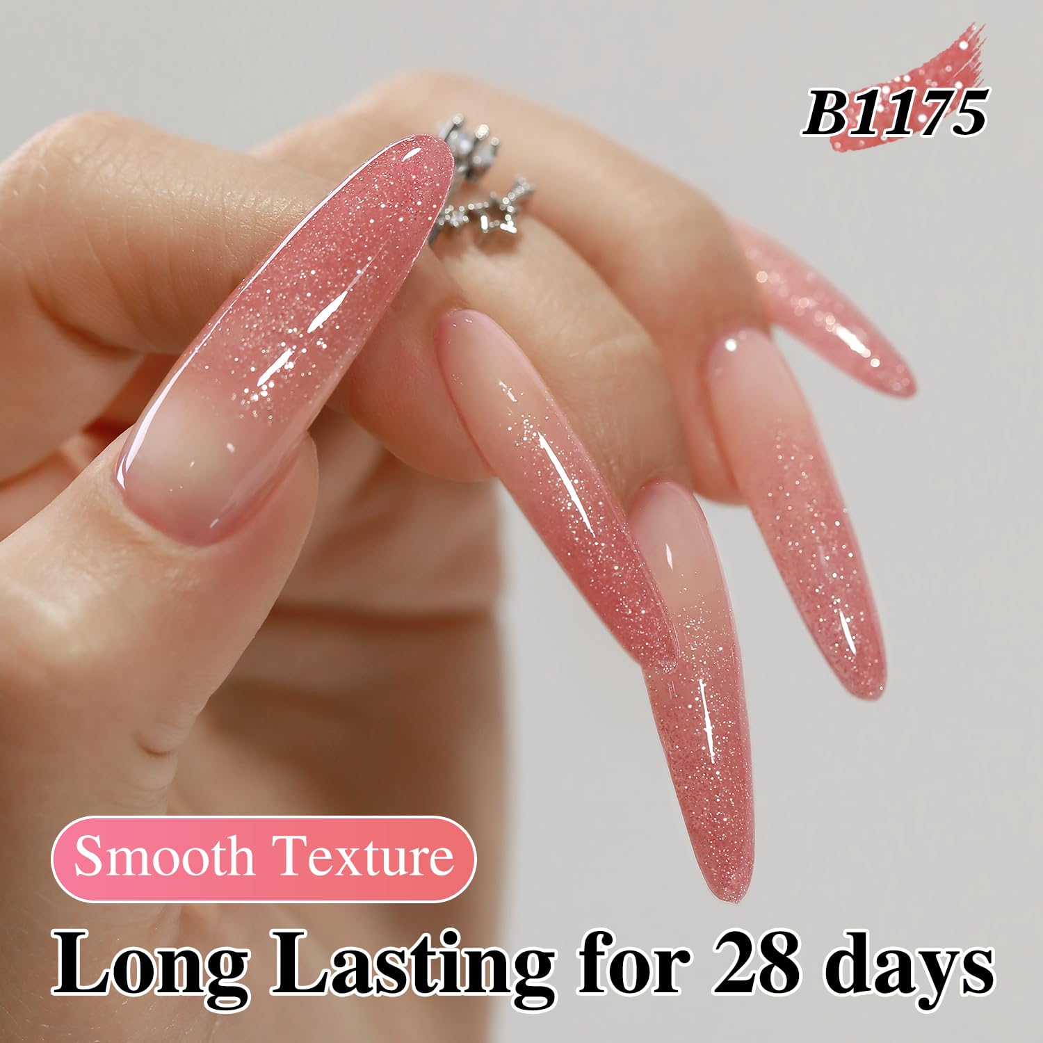 Double Rhythm 0.5Oz Glitter Gel Polish Shimmer Reflective Color for Nail Art Salon DIY Soak Off 15ml Nail Lamp Gel Polish at Home (Rose Pink-B1175)