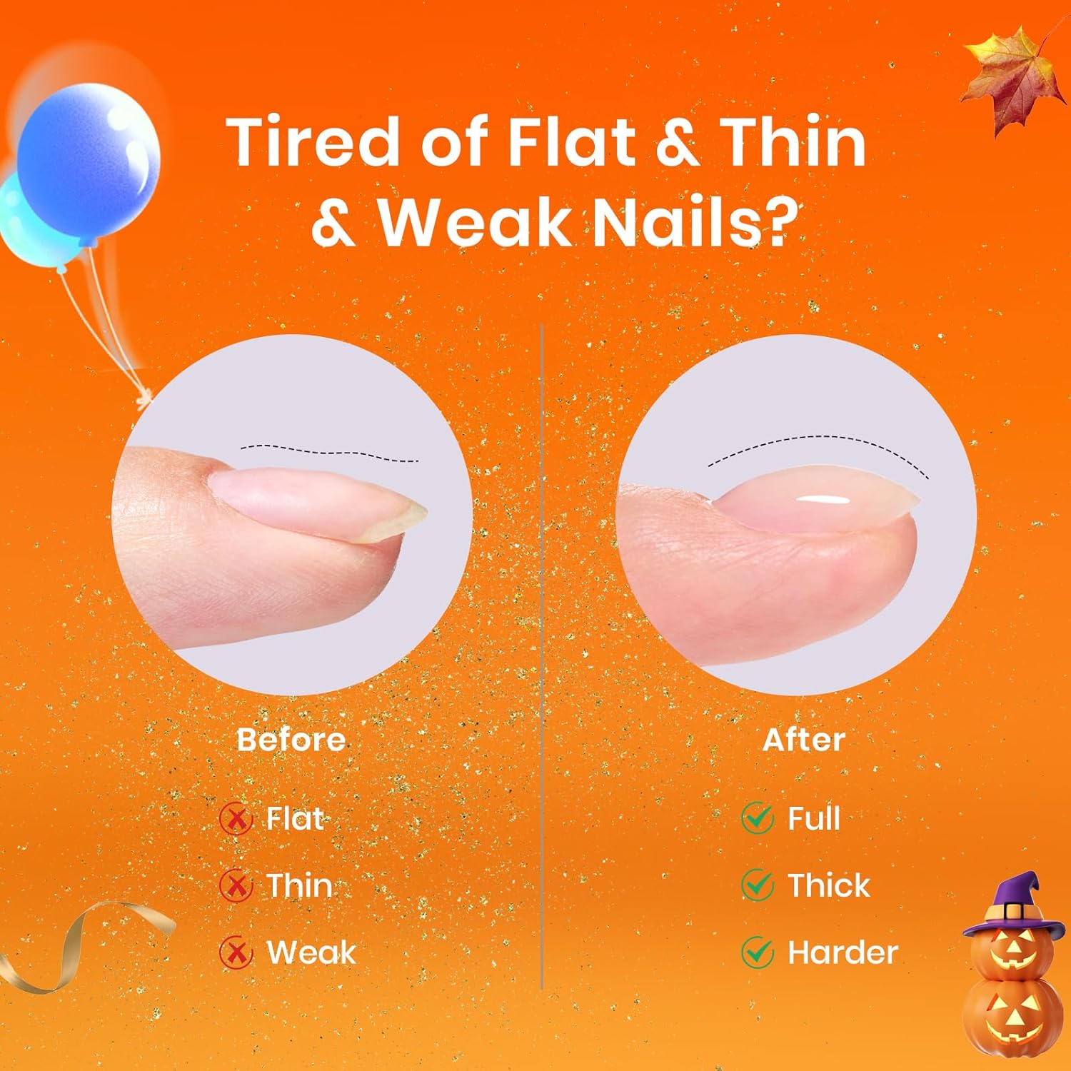 - Strengthening & Thickening Nails:This strengthener gel is specially designed to help with strengthening nails and thickening thin, brittle or flexible nails. Ideal for creating a smooth apex.Long-lasting for 30 Days