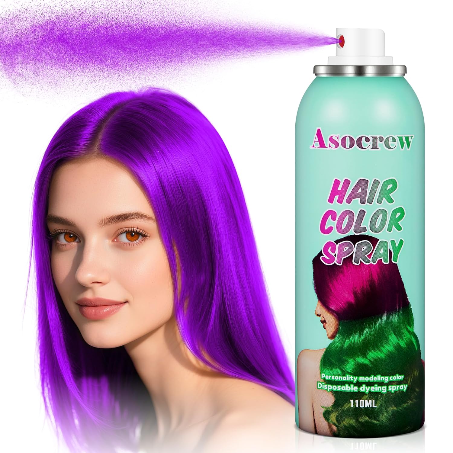 Purple Hair Spray,Hair Color Spray Dye,Temporary Hair Color Spray for Kids Women,Color Hair Spray Pomades,Washable Hair Coloring Natural Hair Dye for Party,Halloween,Cosplay(Purple)