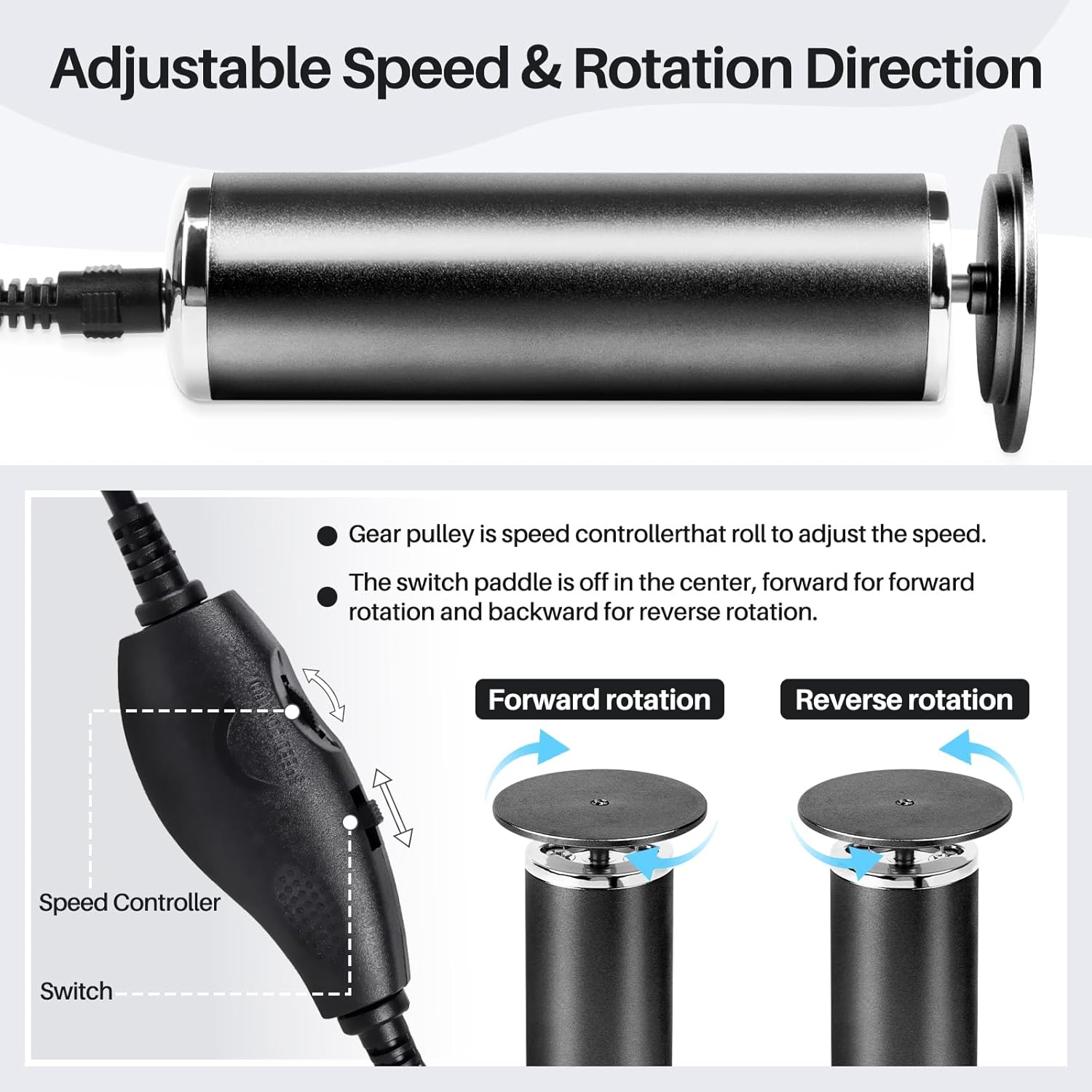 - 【Electric Foot File Remover Callus】360-Degree Rotation Professional-grade electric foot care tool with Adjustable speed and sanding rotation direction of dead skin and calluses, suitable for both right and left-handed use.delivering salon-level pedicure results at home/Salon/Spa Use.