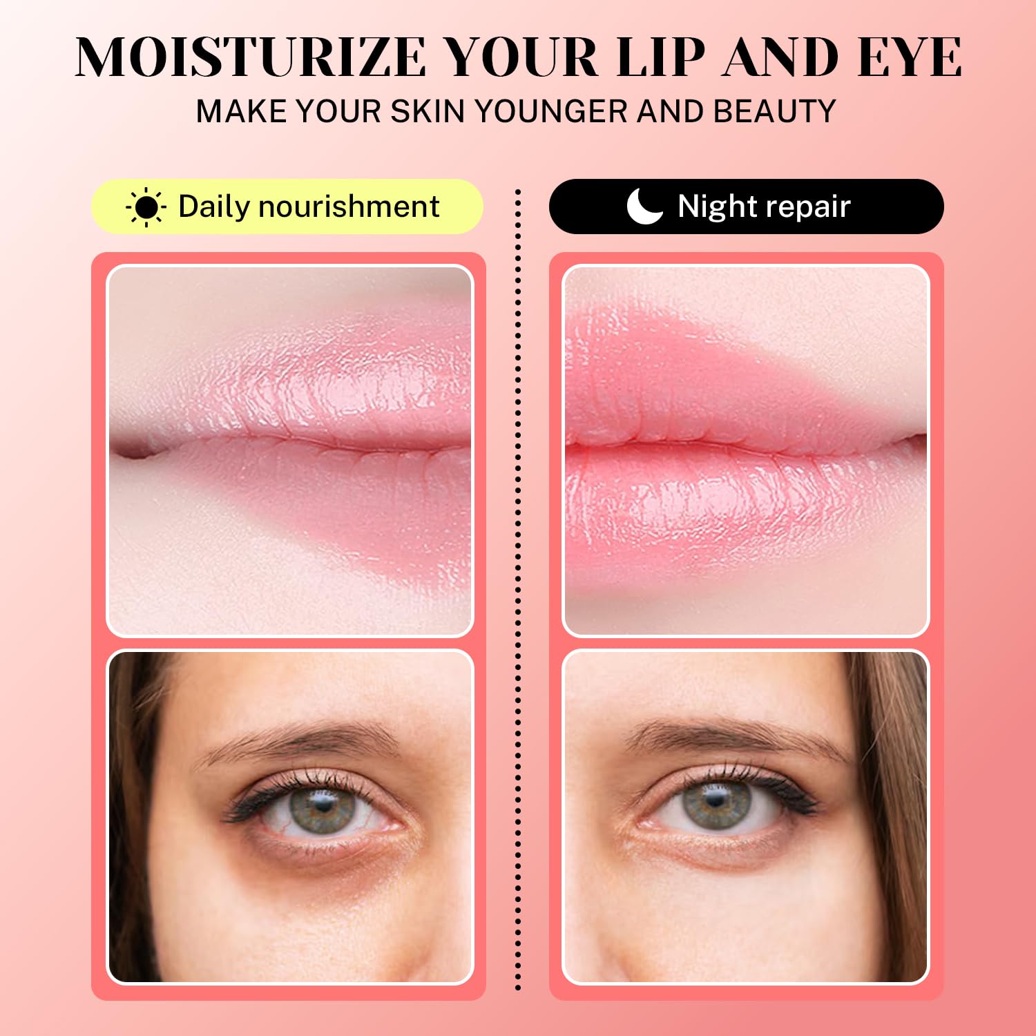 - 【Dual Hydration for Eyes & Lips】 This combo set includes hydrating under eye patches and lip masks, designed to deeply moisturize and rejuvenate the delicate skin around your eyes and lips, leaving them smooth and refreshed.