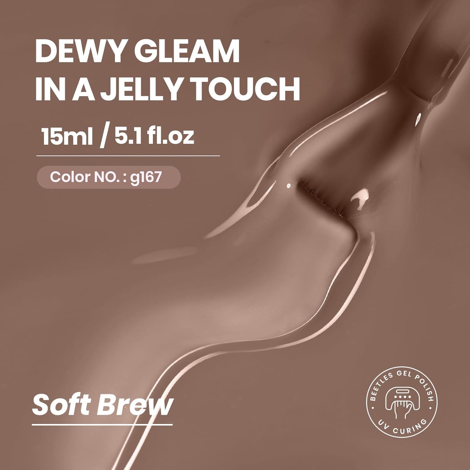 - 【Fashion Sheer Jelly Gel】Beetles 15ml natural nude brown jelly gel nail polish is essential for everyone! A serene blend of mocha warmth and misty hues, perfect for cozy fall afternoons. Jelly Gel Polish: Nude Brown Jelly Gel, it is a semitransparent nail gel polish.