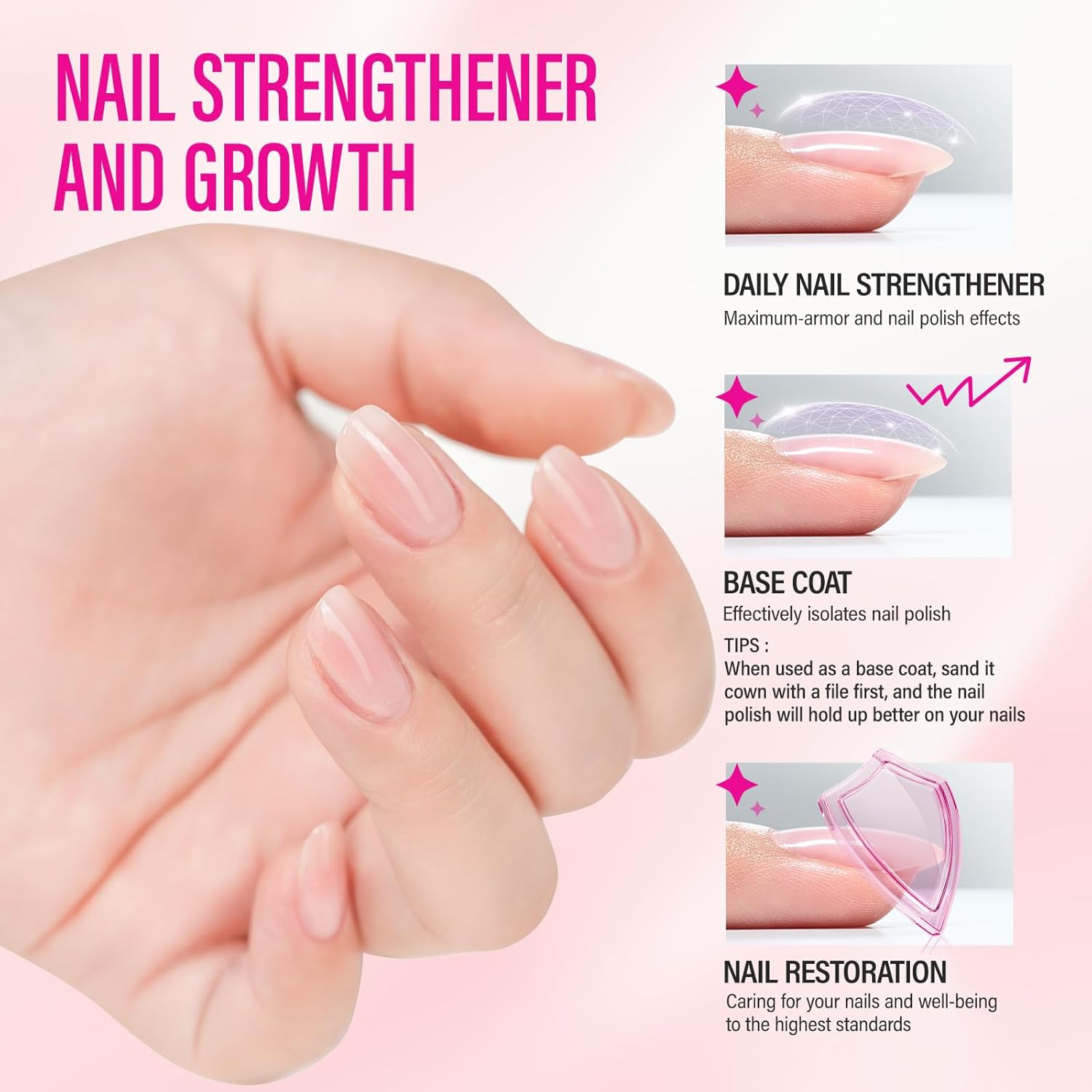 - Form Thin Nails into Strong and Growing Ones: Say goodbye to thin, weak, damaged, brittle, splitting,soft, peeling nails with our strengthener that gradually builds resilience. It's an essential step for beginners, saves time for nail art enthusiasts, and allows professionals to offer top-notch, convenient services to their clients.
