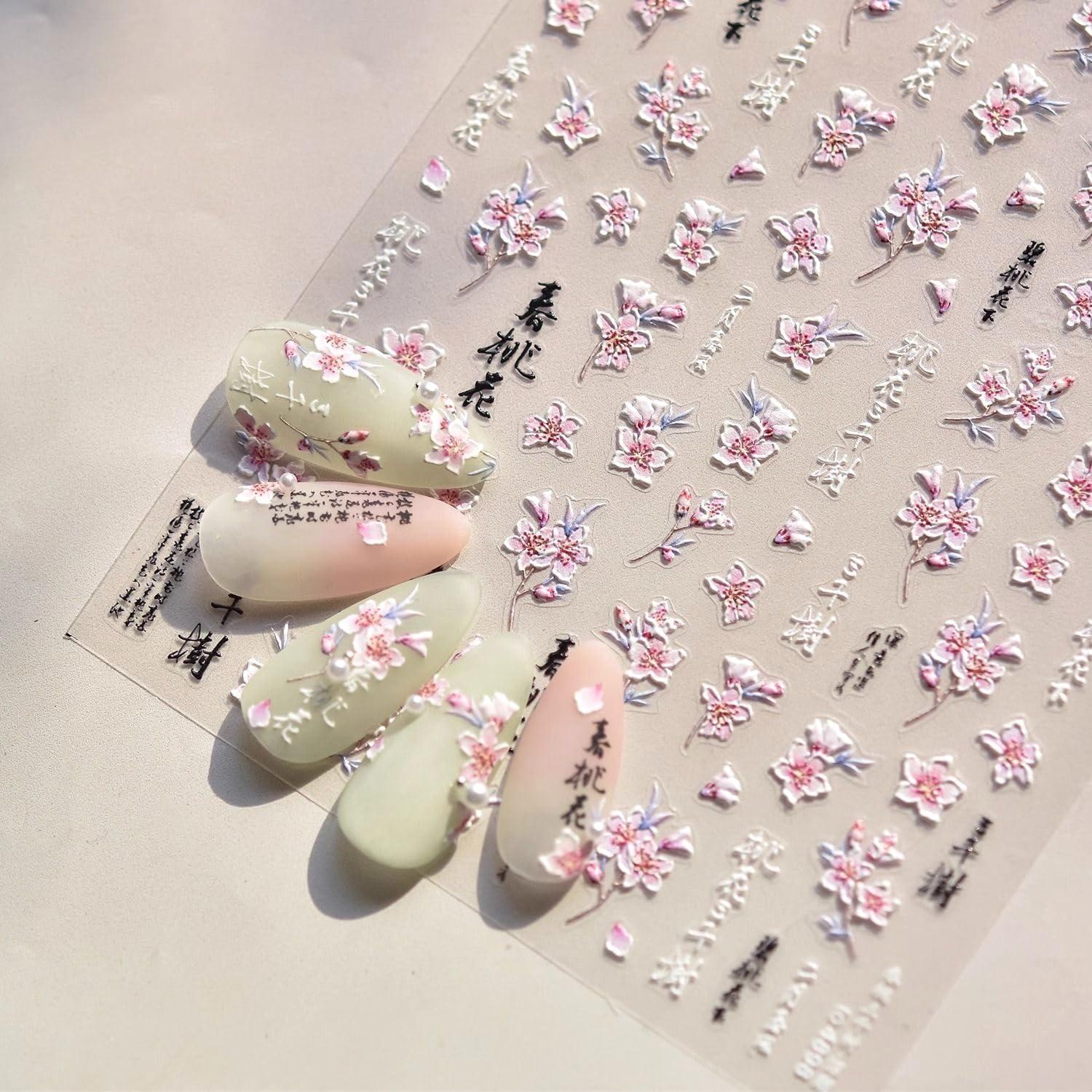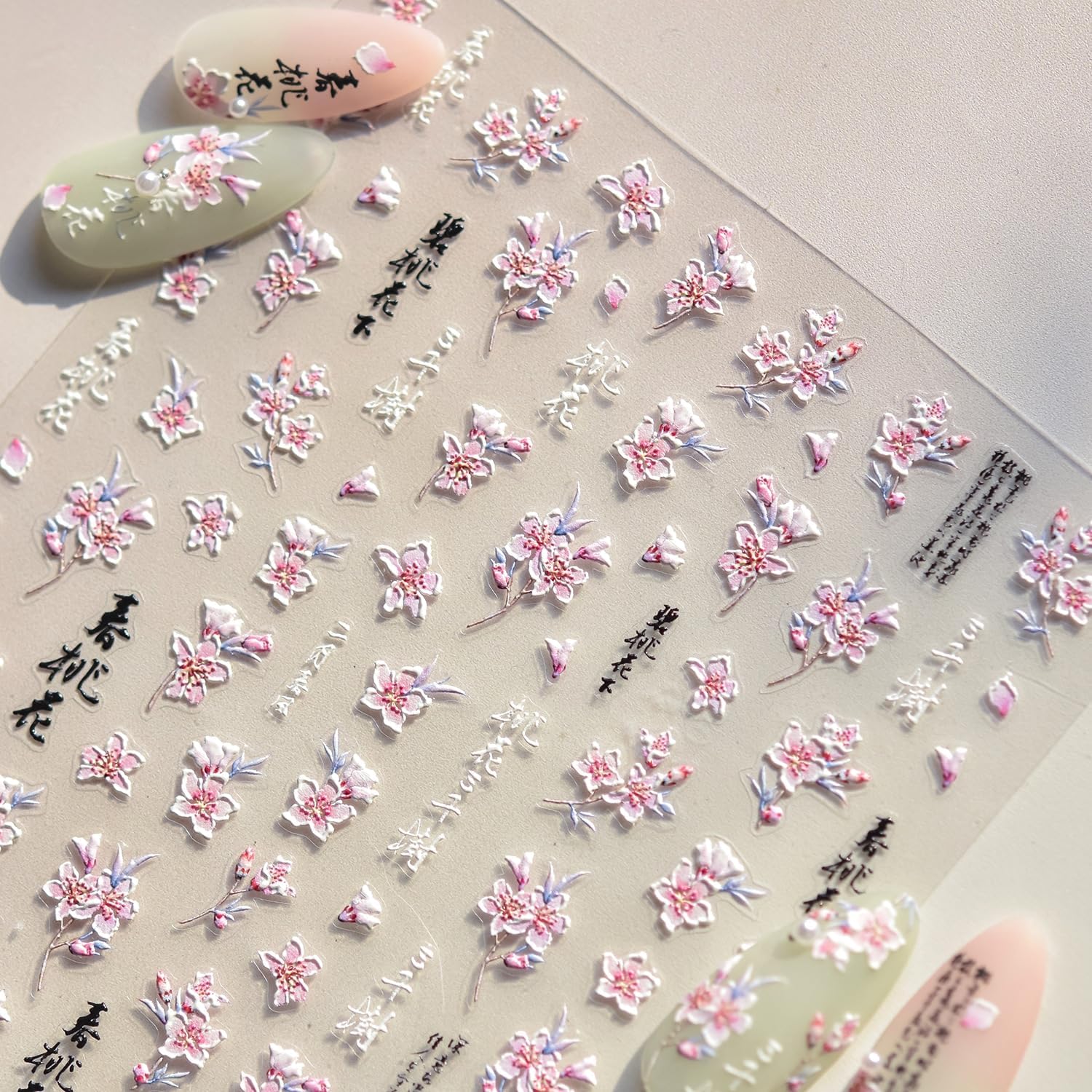 Flower Nail Art Stickers 5D Embossed Spring Nail Stickers for Nail Art White Pink Flower Nail Decals Summer Floral Nail Supplies Self Adhesive Manicure Decoration for Women Girls