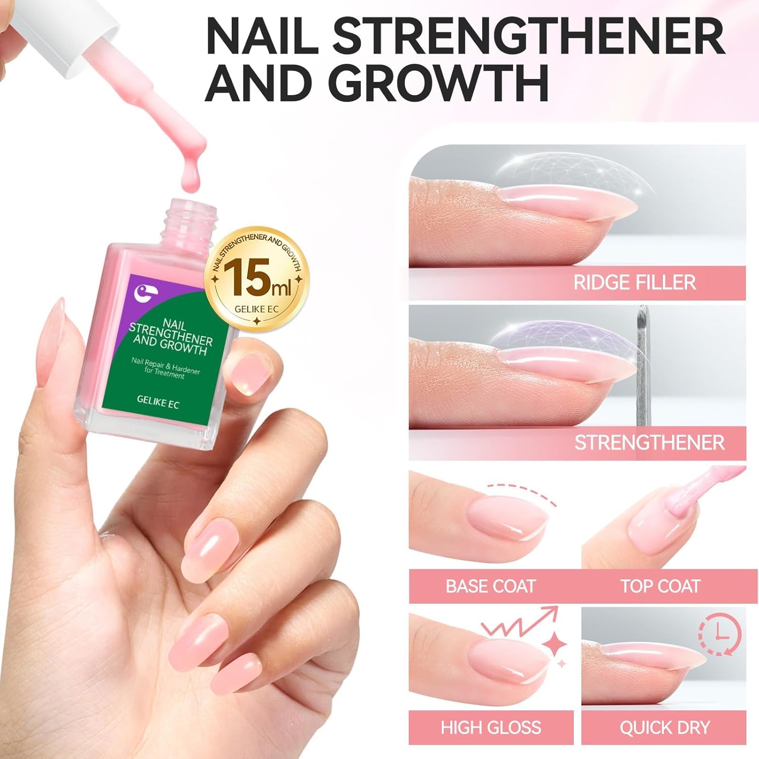 - Revolutionize Your Manicure with Our 6-in-1 Nail Strengthener: Experience the ultimate nail care with our updated formula that combines Nail Protein Growth, Strengthening, Base Coat, Top Coat, Quick-Drying, and High-Gloss in one bottle. Perfect for everyone, this versatile solution simplifies your nail routine and enhances any nail art design effortlessly