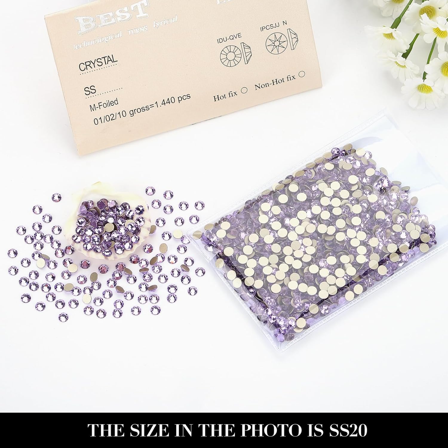 - PACKAGE DETAILS: Pack of 1440 pieces Crystal Amethyst rhinestones SS20, size 4.6-4.8mm.