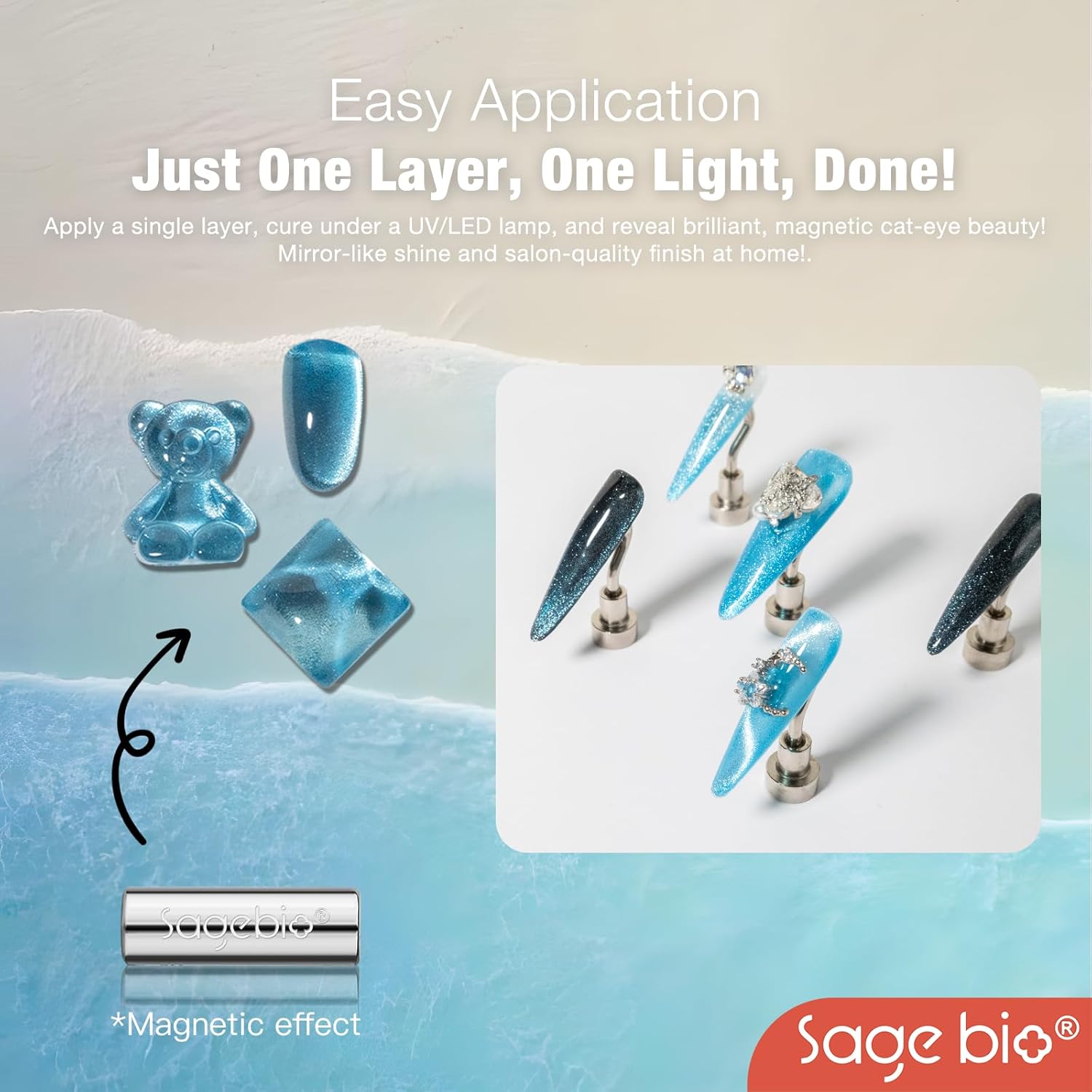 - Multifunctional Formula: SAGEBIO’s Cat Eye Gel Nail Polish combines both the base and color in one easy-to-use formula. No need for additional base or top coats, streamlining your nail art routine.