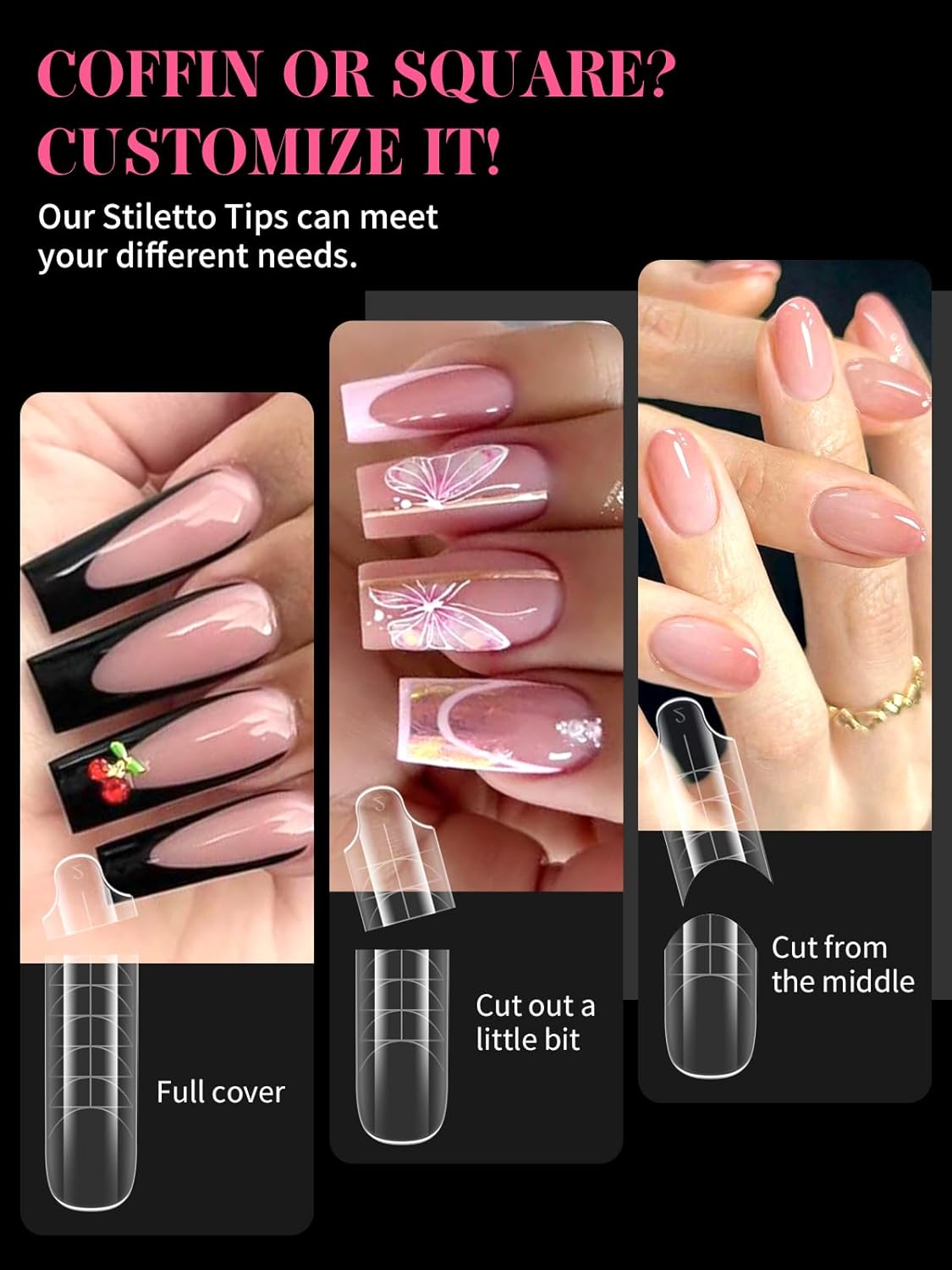 - 【Sturdy No C Curve Gel Nail Forms】Reusable extra long nail molds are made with high quality material, which is strong, tough, and reusable, providing you with a different lengths nail art experience that lasts.This artificial nails forms protective sleeve has a small handle on both sides, which is convenient for constructing gel nail extension nails, and will not stick to your hands, and can be easily removed after application.