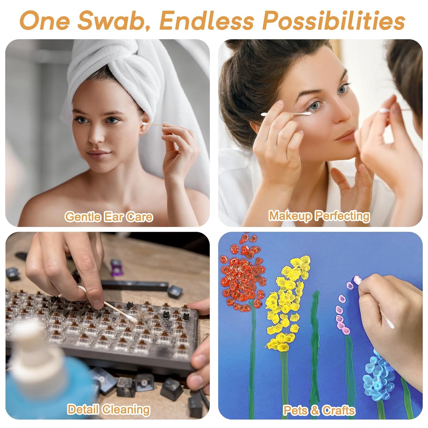 - Versatile & Multi-Purpose: Ideal for nail care, pet grooming, cleaning, and more. These cotton swabs make every task easier while bringing comfort and care to your life.