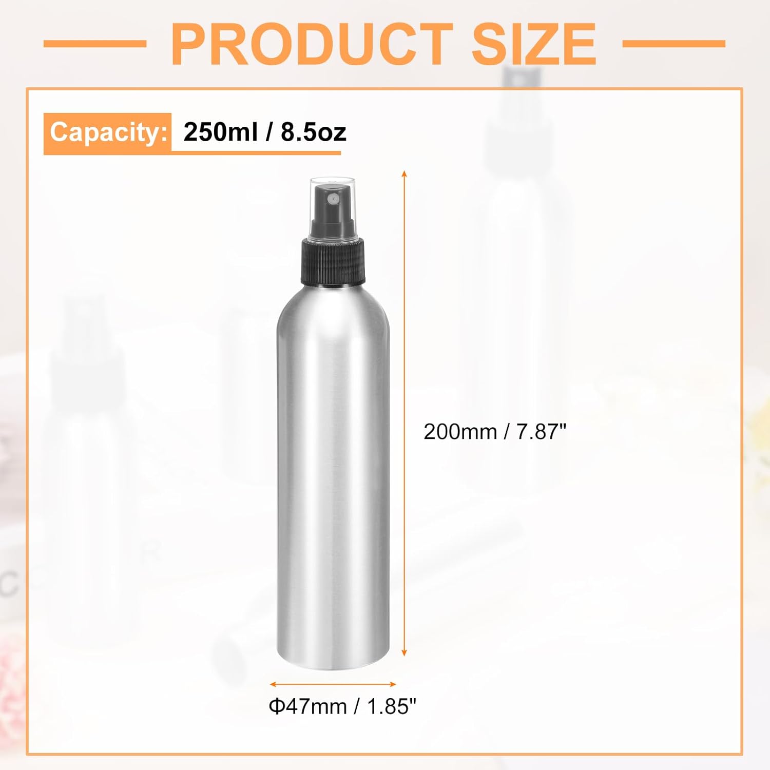 HARFINGTON 3pcs Aluminum Fine Mist Spray Bottles 250ml/8.5oz Metal Small Liquid Alcohol Refillable Travel Container with Black Plastic Nozzle Cap for Perfume Skincare Cosmetic Storage Bottle
