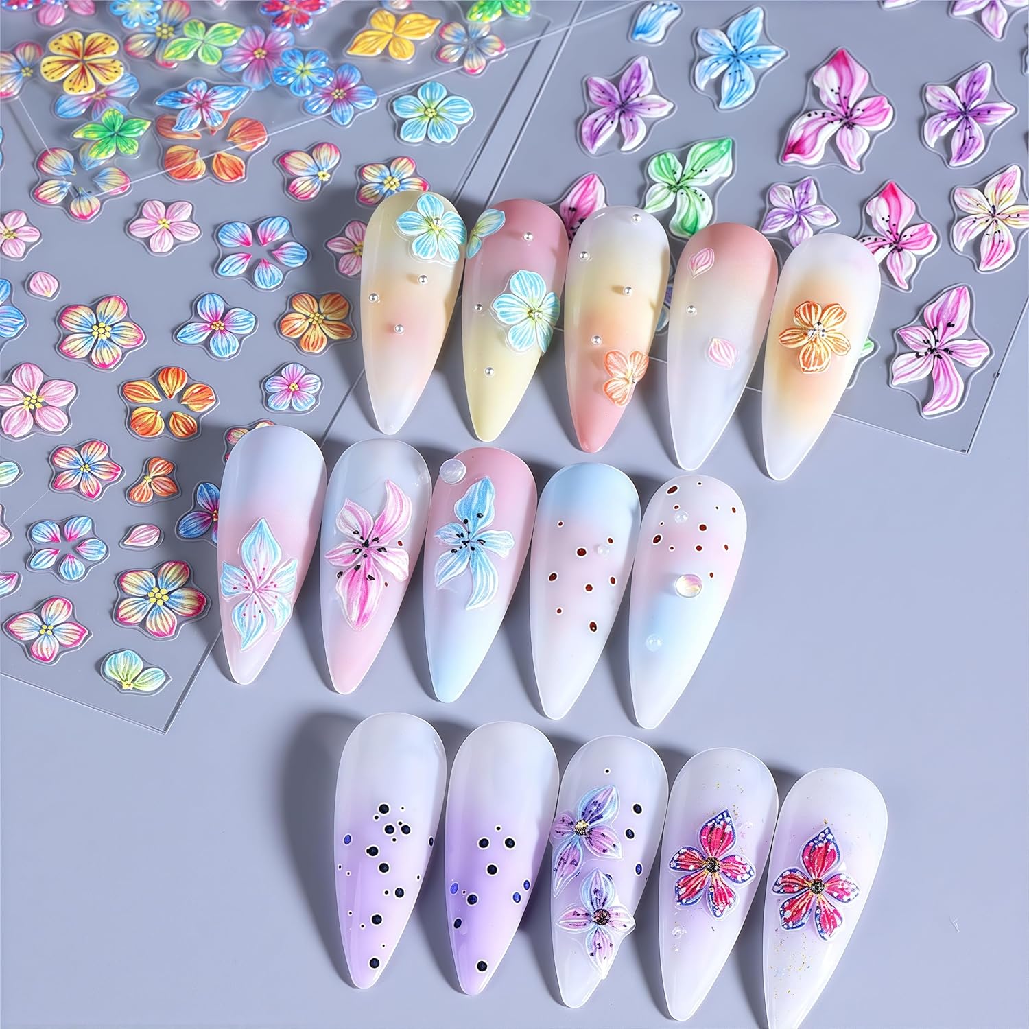 - Flower Self-adhesive Design: 5D cute nail decals for nail art design is simple and quick to use, nail stickers work great on bare nails, they will stay on for a long time and will not peel off your nails, enjoy the feeling of nail art
