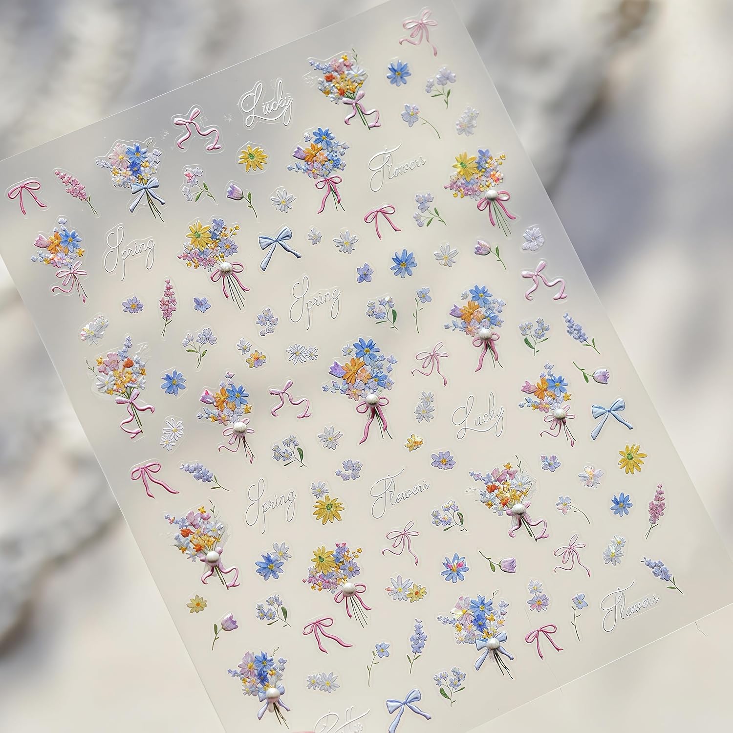 - Spring Flowers Nail Stickers- You will get 1 sheets ribbon bow floral nail art stickers for acrylic nails supply, many pattern for you to choose, floral pearl nail designs, and satisfy your rich imagination of nail DIY