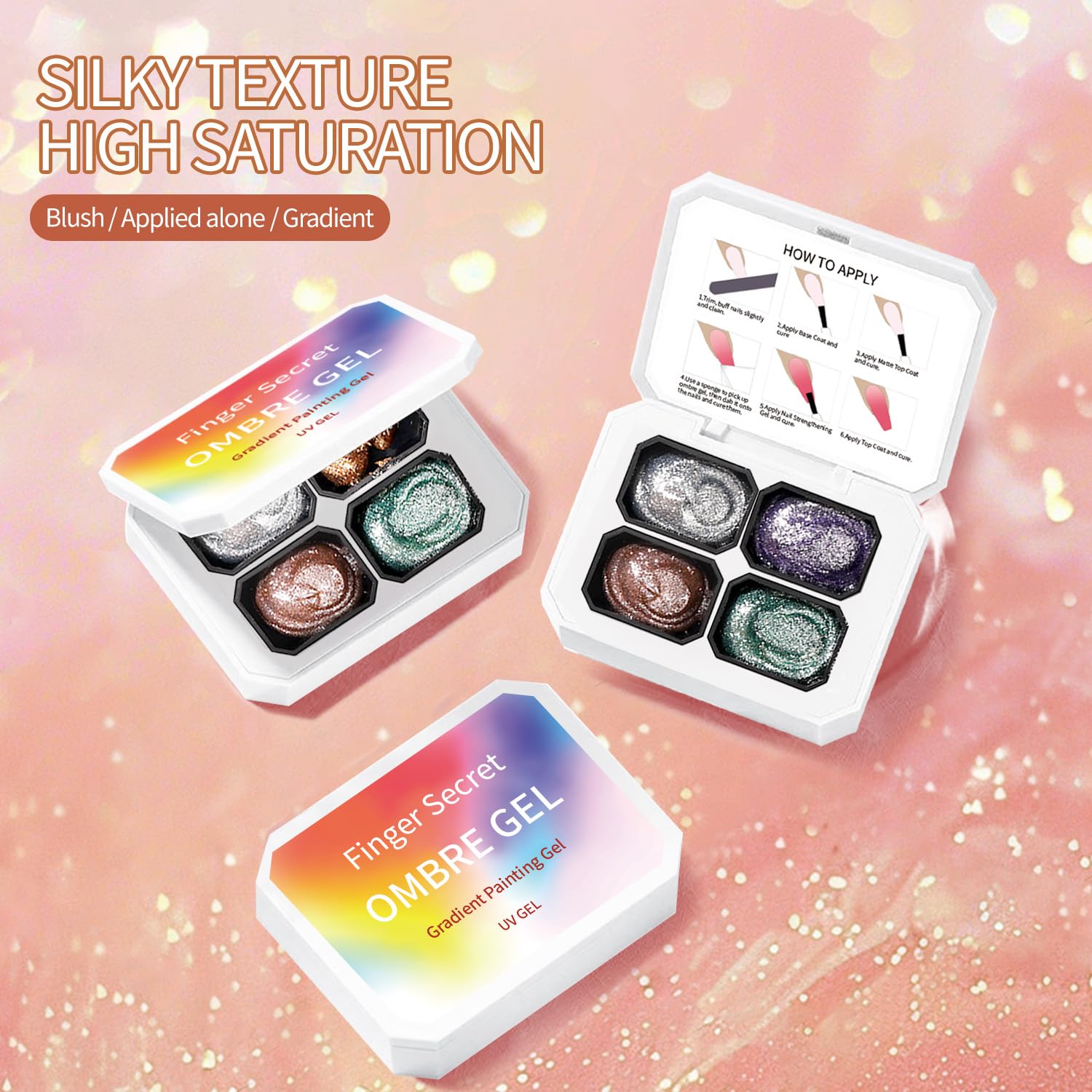 - Finger Secret Ombre Gel Polish:The 4 colors set ombre gel meets the nail art needs of different seasons and scenarios. Moreover, the ombre gel nail polish set is lightweight and portable, allowing you to have shiny nail art all the time.