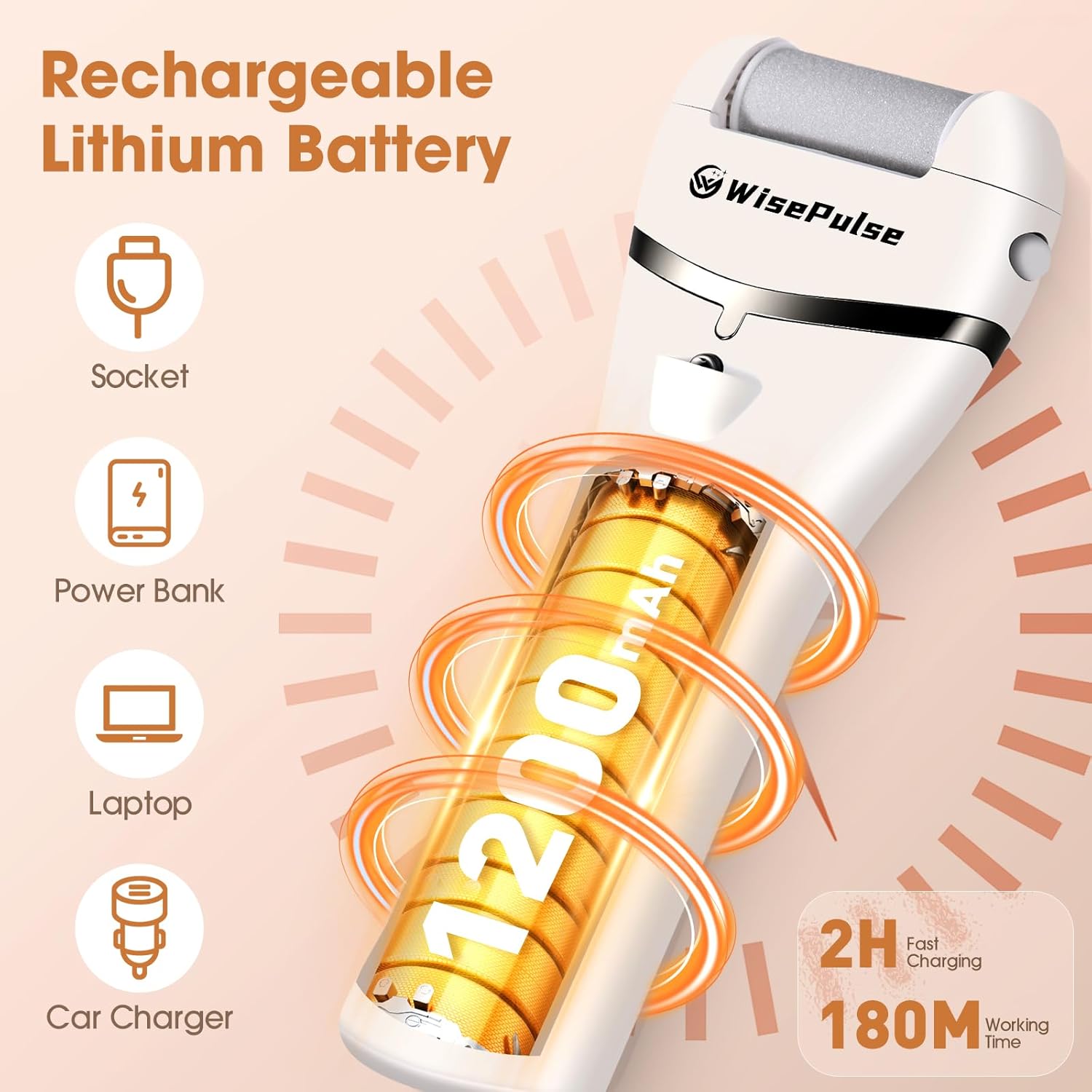 - Perfect for Gift Choise: Our electric callus remover for feet effectively removes dead skin and calluses, revealing smooth heels and beautifully maintained feet while saving you the time and cost of salon visits. This pedicure tool set offers premium foot care for you, your family, and friends, delivering a spa-like experience at home. WisePulse is committed to ensuring customer satisfaction and quality control.