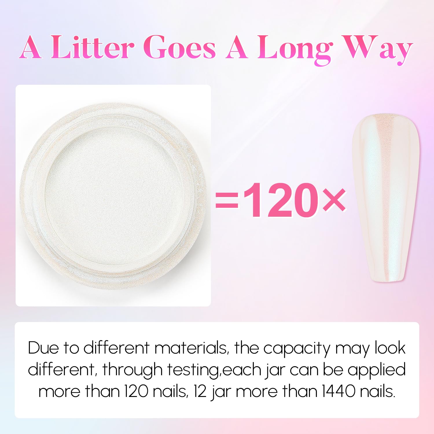 - A little Goes A Long Way: AIMEILI holographic chrome nail powder for nails, only need to be applied a small amount to decorate nails. It's enough for you to do 40-50 manicures (more than 300 nails) at the nail salon or home for each jar.