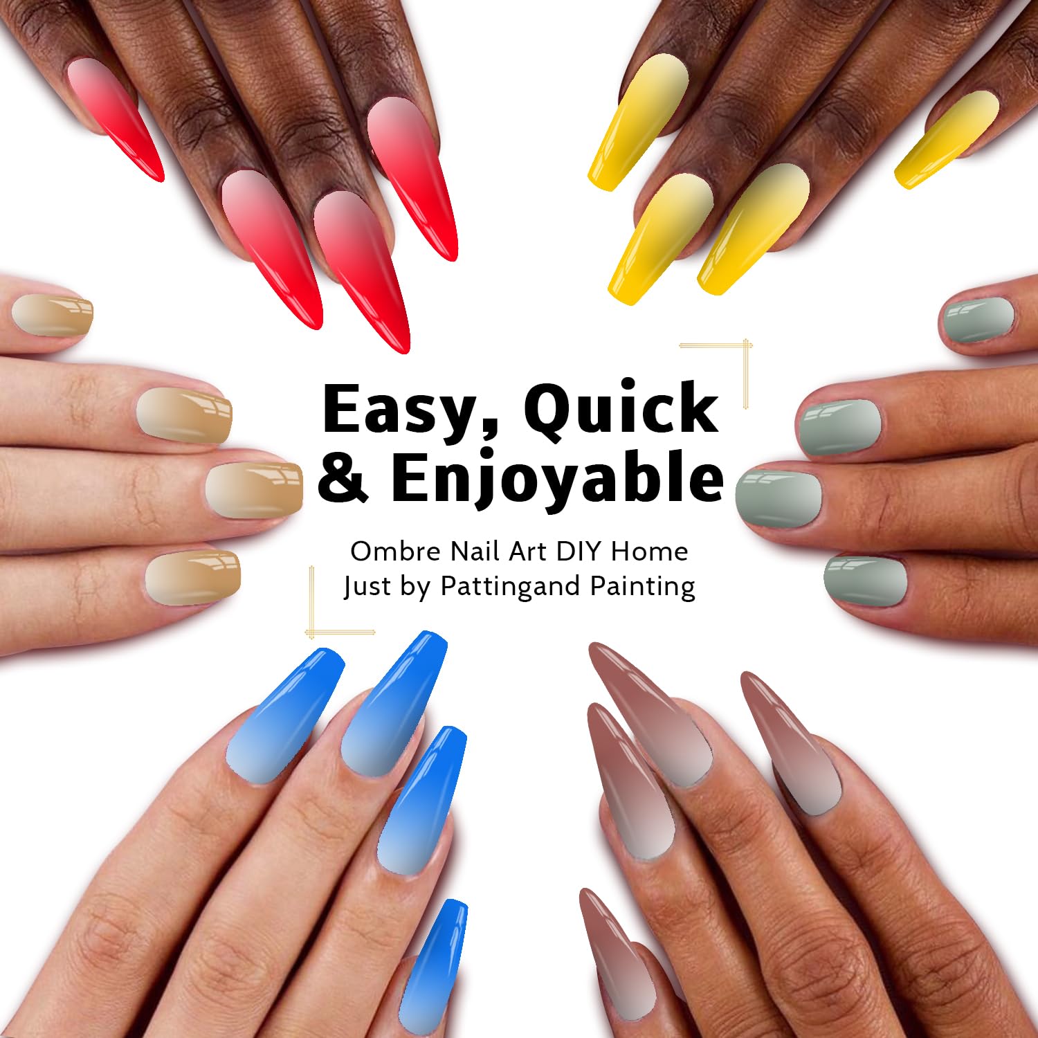 - 【EASY USE:】All steps are the same as normal UV/LED nail gel: 1.Clean and Prep; 2. Base coat and cure. 3. Apply color gel and cure. 4. Top coat and cure. 5. Clean nails and apply oil. Karroy ombre painting nail gel is easy to use: just grabbing a sponge and picking up your desire color, and patting sponge on your nail, you will get wonderful gradient coloring nails!