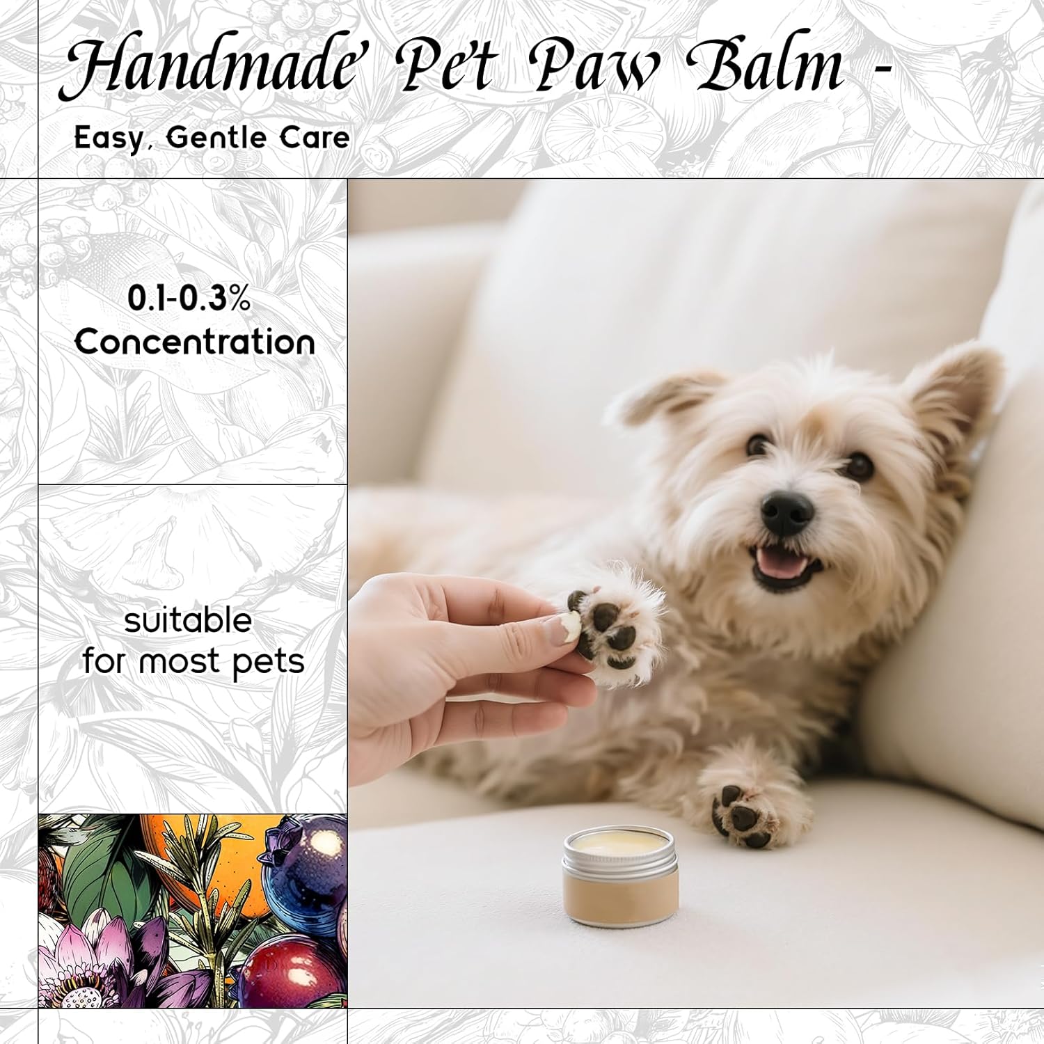 - Pet-Safe – A gentle, pet-friendly formula suitable for homemade paw balms and sprays. Free from harsh alcohols