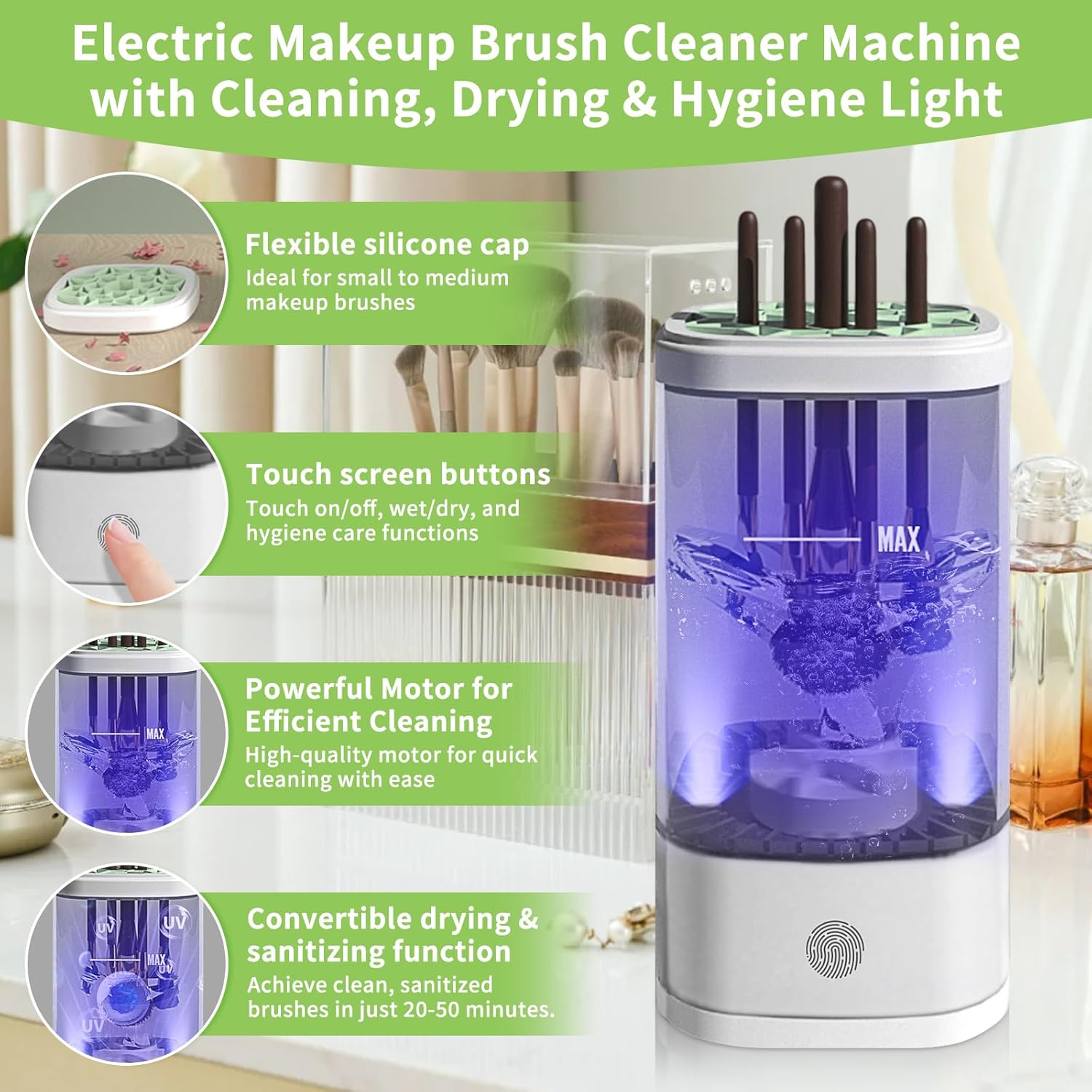 - 【 Perfect Gift for Makeup Lover 】The one-button operation makes it ideal for beginners and professionals alike. Its sleek design and elegant build make it not only functional but also beautiful to display on a vanity or dressing table. Whether it’s for a birthday, Christmas, Valentine’s Day, or a just-because surprise, this brush cleaner combines practicality with luxury. It's a thoughtful gift that shows you care about someone’s skincare, hygiene, and beauty experience.