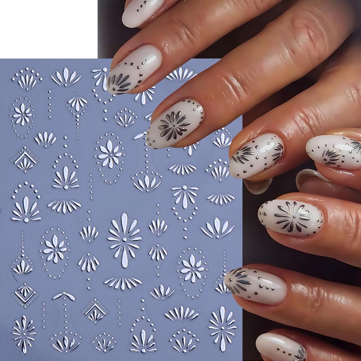 - Easy to Use: This Bohemian floral nail stickers for nail art is self-adhesive. just use tweezers to tear off the cute nail stickers, and then stick the 3d nail stickers on the nail.You can also use nail gel to cover to make the beautiful stickers last longer